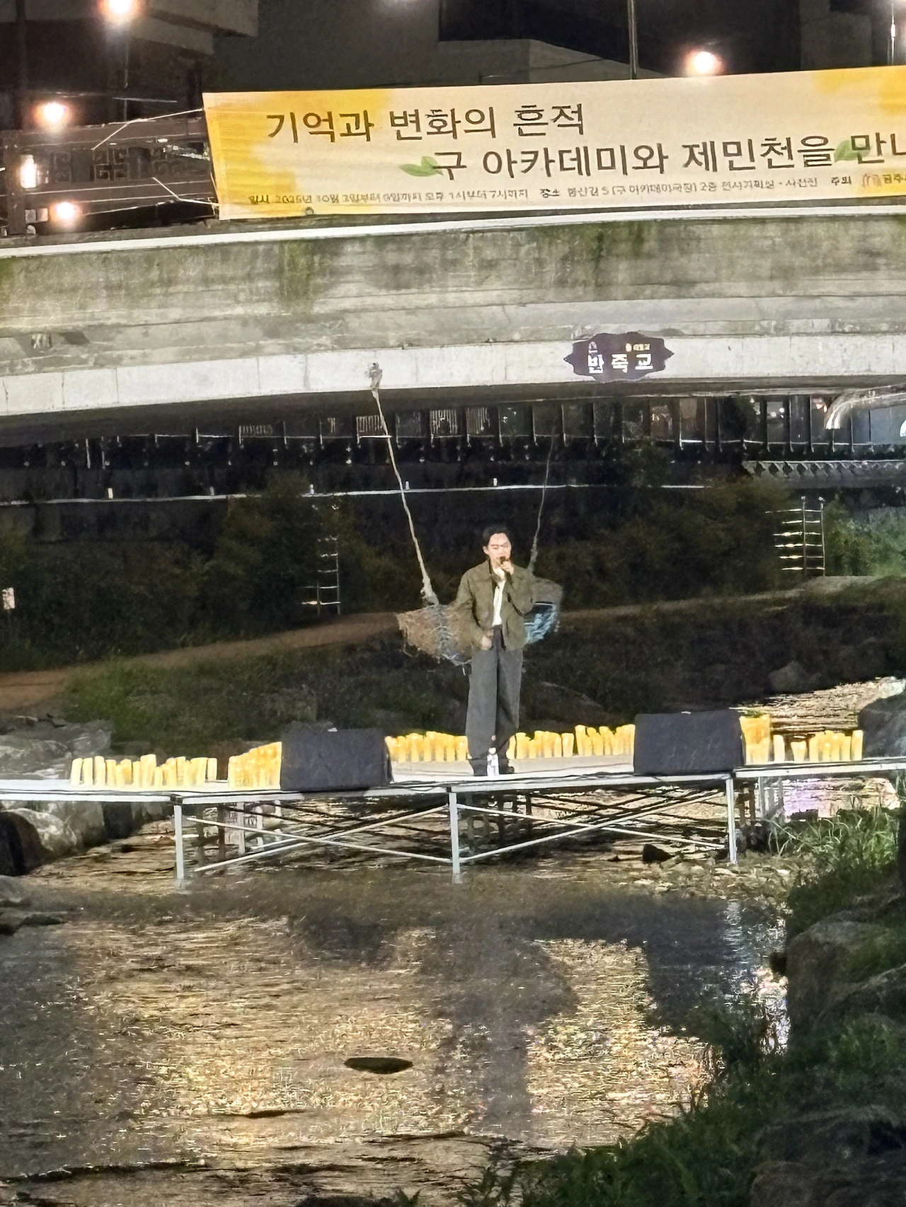 자온 : 페스티벌 1차 끝 안 후 집으로 돌아오는 길에 제민천을 걷는데, 물 위로 버스킹 소리가 퍼졌어.