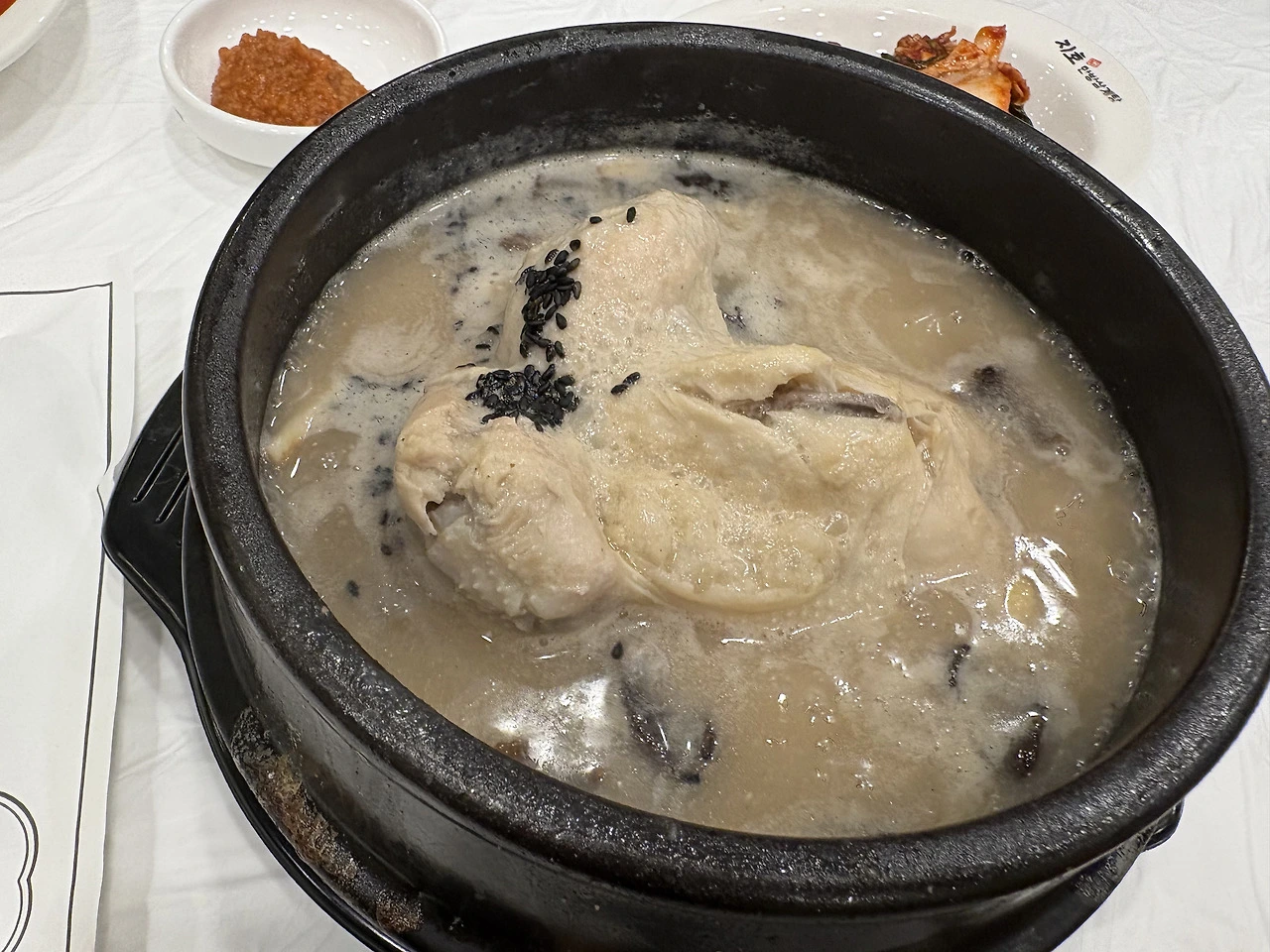 자온 : 한입 뜨자마자 속이 풀리더라. 따뜻한 국물이 온몸을 따라 흐르면서 피로가 잠잠해지는 기분과 함께 능이 삼계탕을 깨끗이 청소했어.