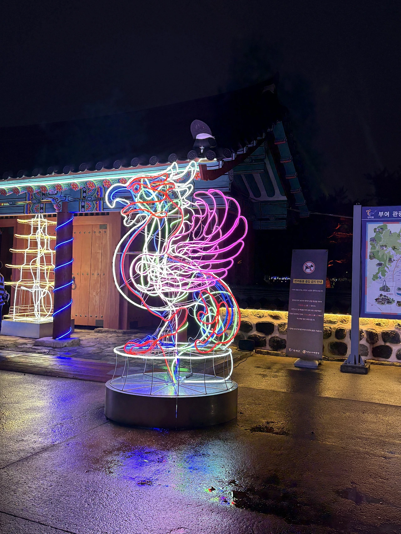 자온 : 저녁이 되자 , 작은 빛이 퍼져서 백제 금동 대향로가 피어오르며 아름다운 미디어 불빛으로 변신하는 부여의 호흡이 눈으로 보여서 좋아
