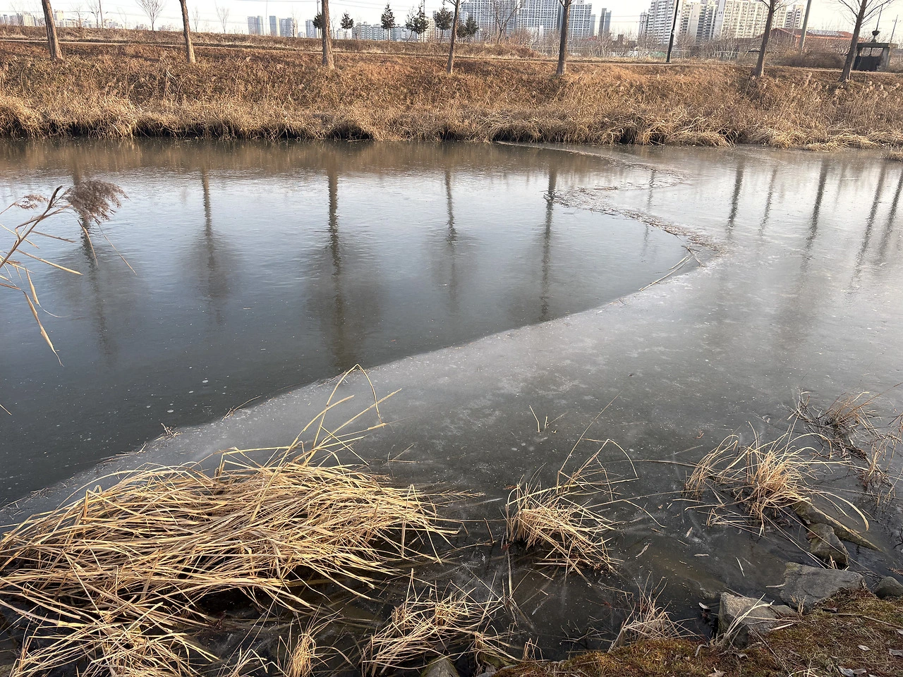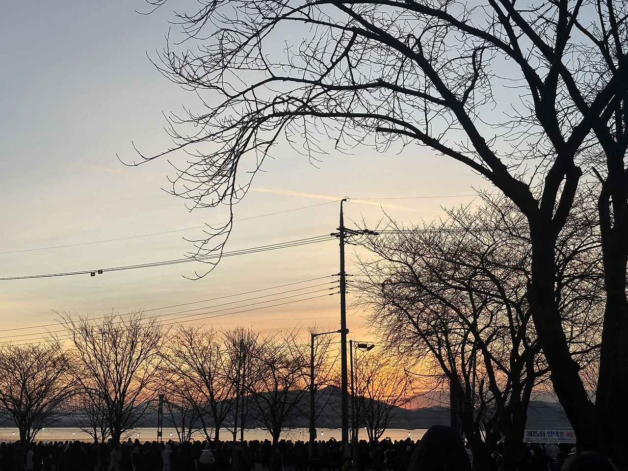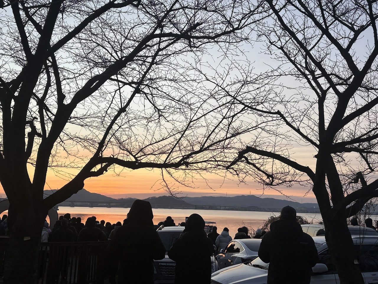 인파 속에서 겨우 건져 올린 일출, 차 안에서 맞이한 작은 햇살, 그냥 돌아가기 싫어 이어진 산책, 얼어 있는 물 위에 반사된 빛과 흩어졌다 다시 모이는 새떼, 또 비도 오지 않았는데 등장한 해와 무지개.