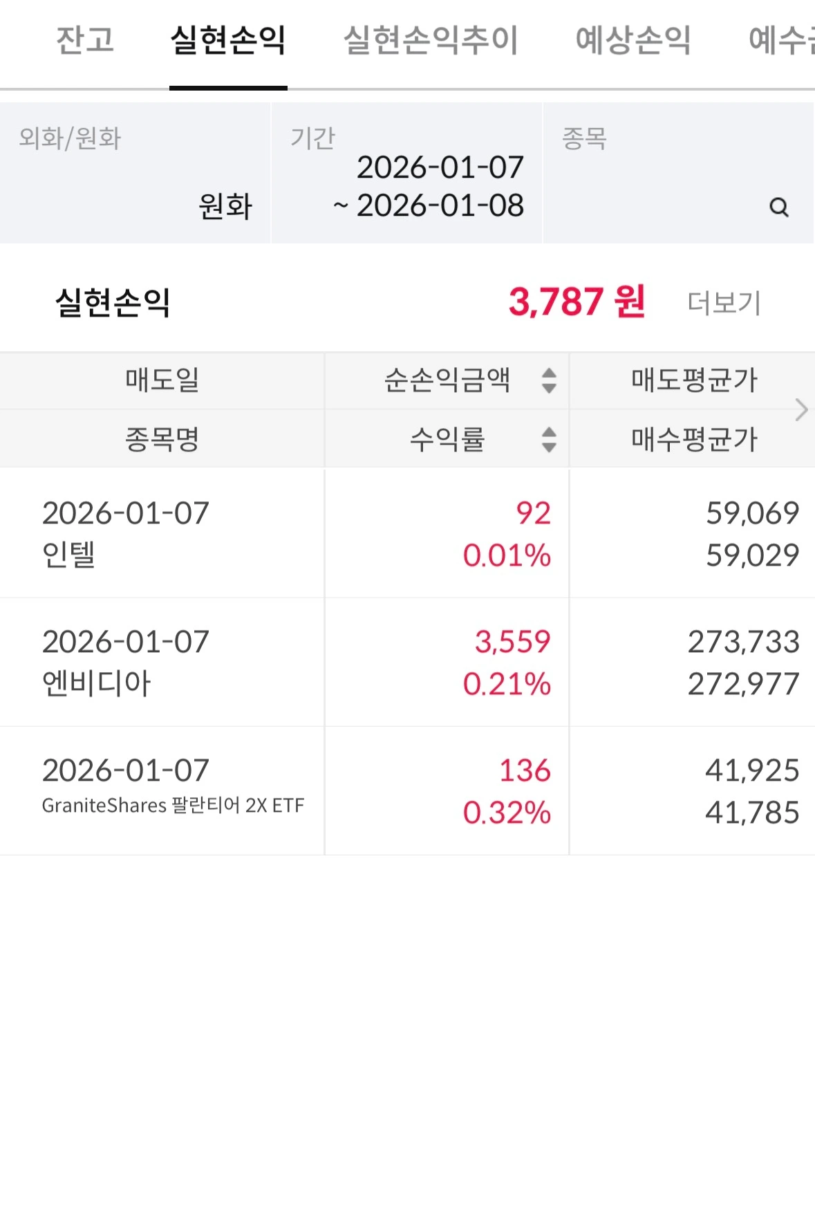 오래 붙잡던 인텔은 가만히 둬도 위로 올라갈 에너지였는데 버는 것보다 관망을 마무리하는 선택이 더 투명해서 본전 아래의 빨간 불 하나만 남긴 후 손을 떼 본다.