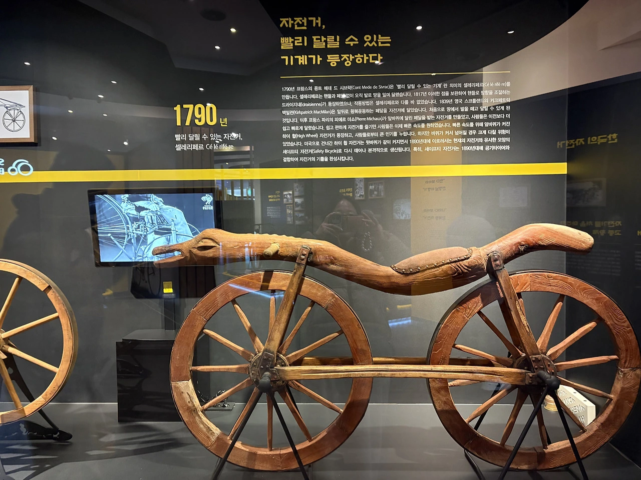 하츄핑 : 오래된 자전거들 전시들은 속도를 위해 태어난 게 아니라, 이동을 가능하게 하려는 디자인 같아.