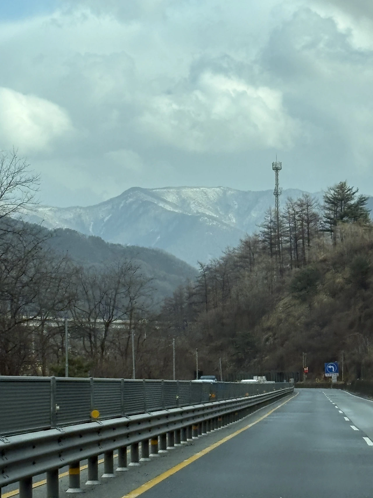 쿠로미 : 난, 유독 기억에 남는 건 문경에 거의 도착해서 차 안에서 눈 덮인 산을 보더니 과한 리액션과 함께 남긴 인증샷.