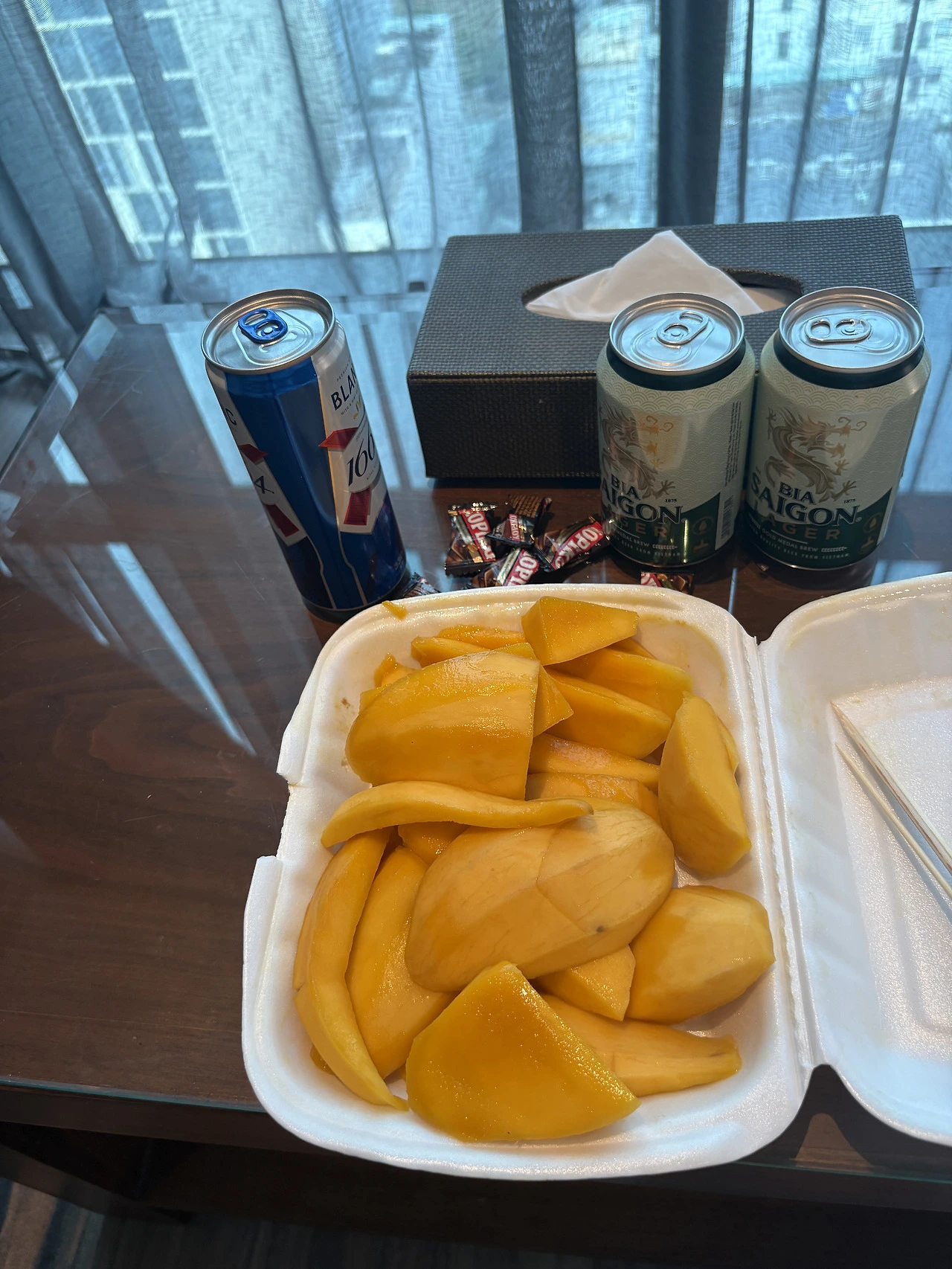 하츄핑 : 솔직히 몽키 보느라 배에서도 꼬르륵 소리 들리던데, 그래서 숙소 도착 하자마자 바로 망고와 맥주 비우기.