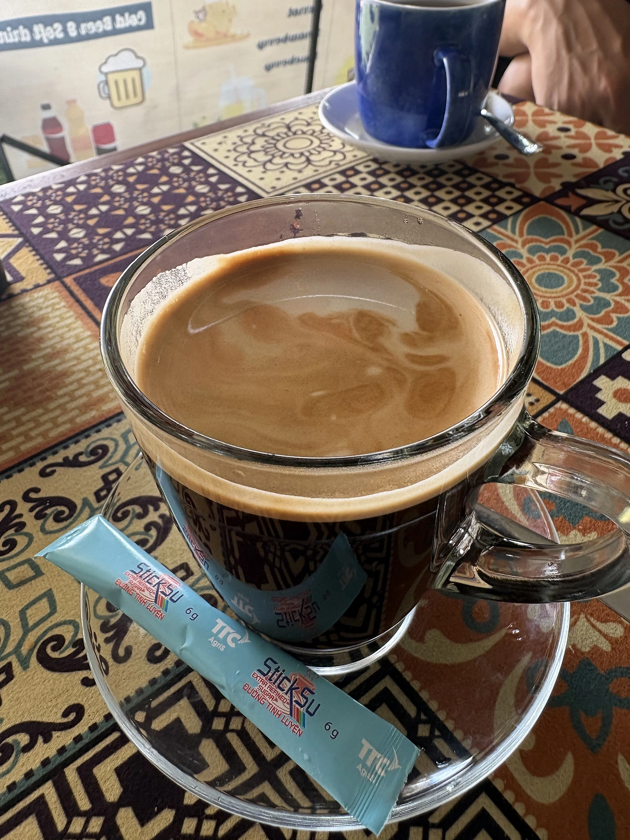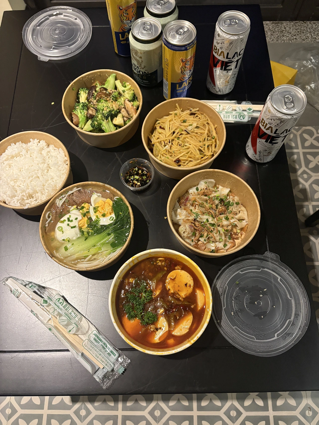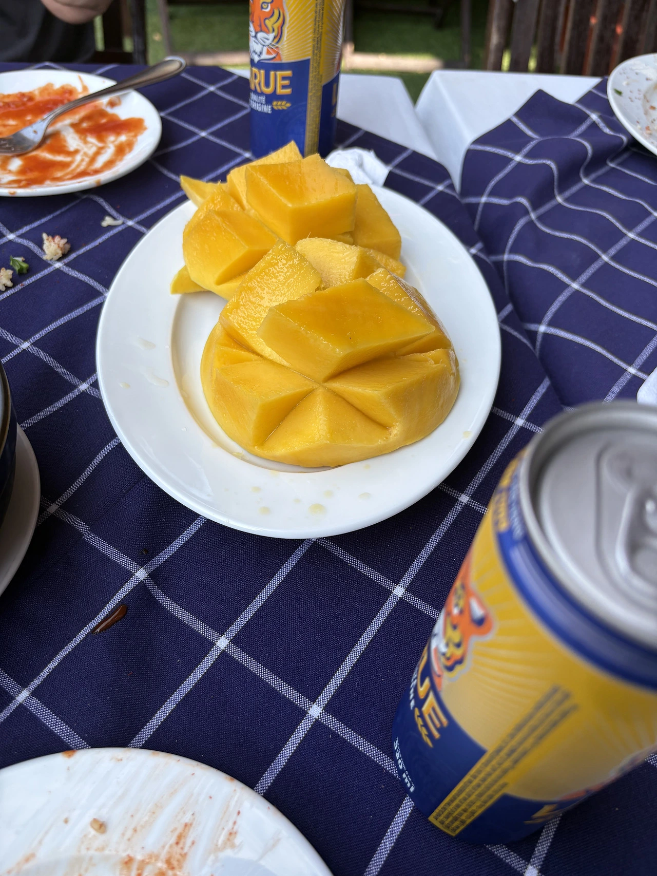 쿠로미 : 파란 체크 테이블 위에 맥주 두 캔, 노랑과 파랑 대비가 너무 직설적이라 오히려 아트야.