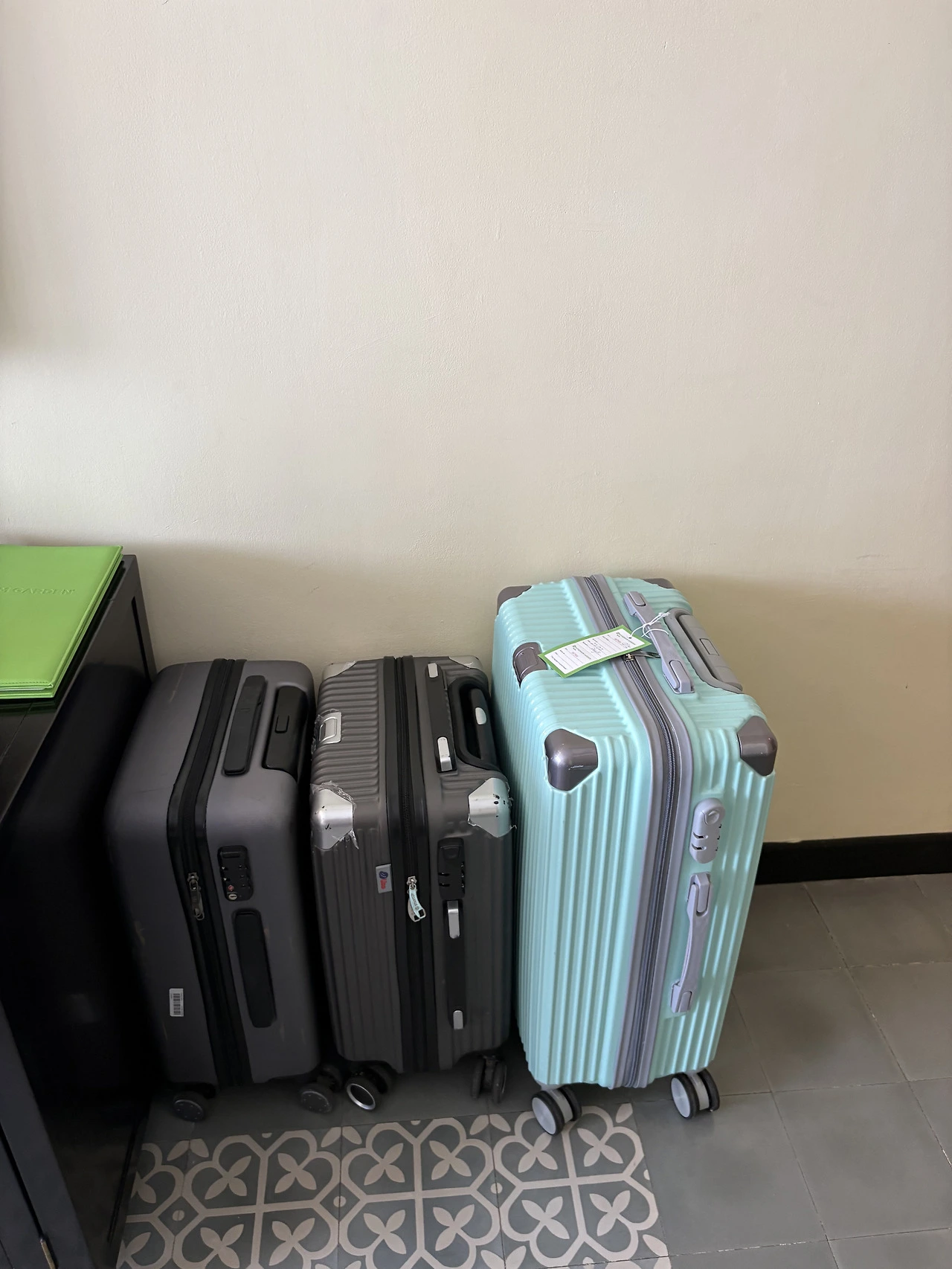 체온 : 캐리어 세 개가 벽 옆에 나란히 서 있는 순간, 런드리 맡겨야 한다는 생각이 떠올라.