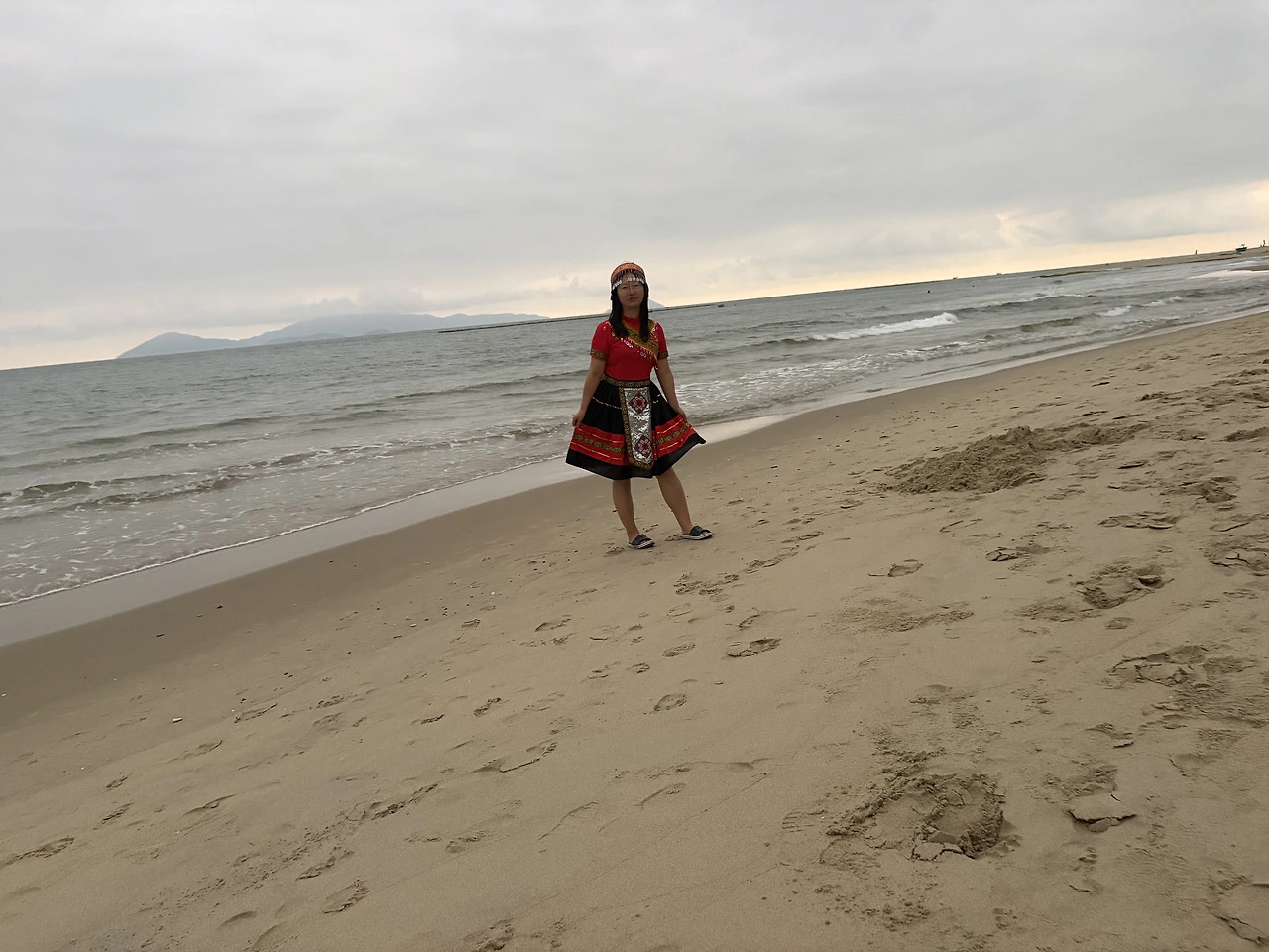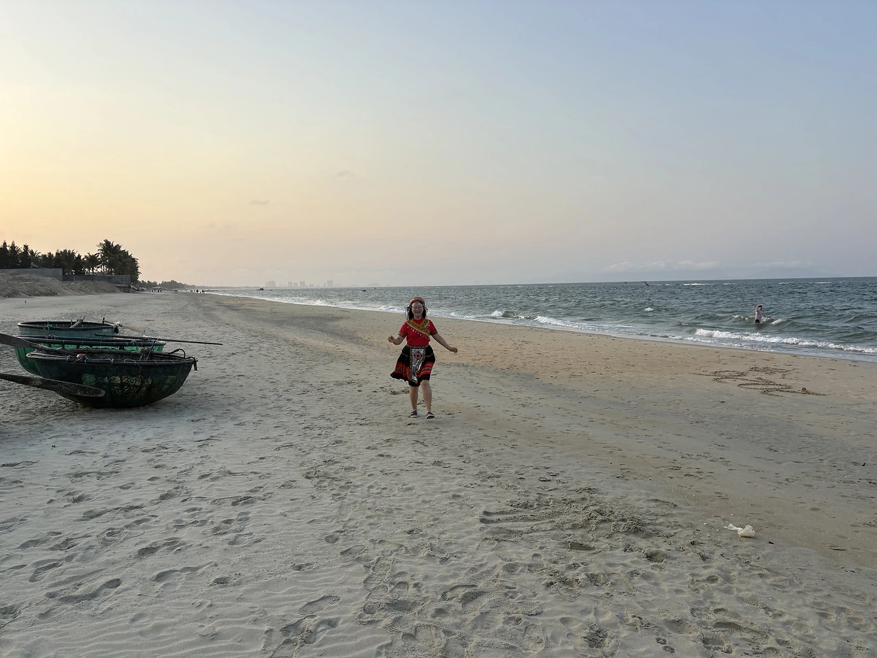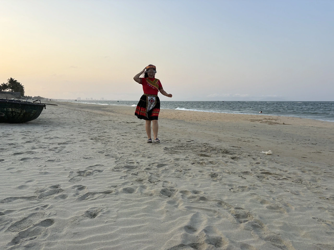 하츄핑 : 해가 완전히 올라오기 전이 제일 아트 같아, 어제 입었던 붉은 의상 색감이 붉은 태양과도 잘 어울려.
