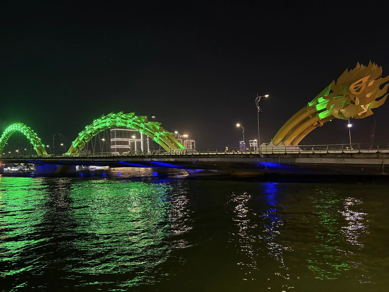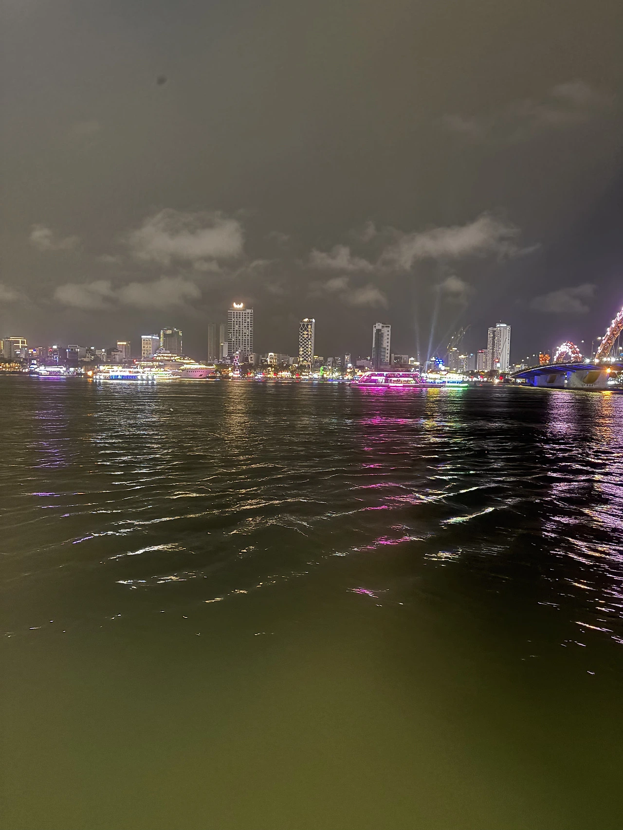 몽키 : 어젯밤 용다리의 불쇼, 물 위에 그려진 불빛이 강 전체를 하나의 무대로 만들던 아트.