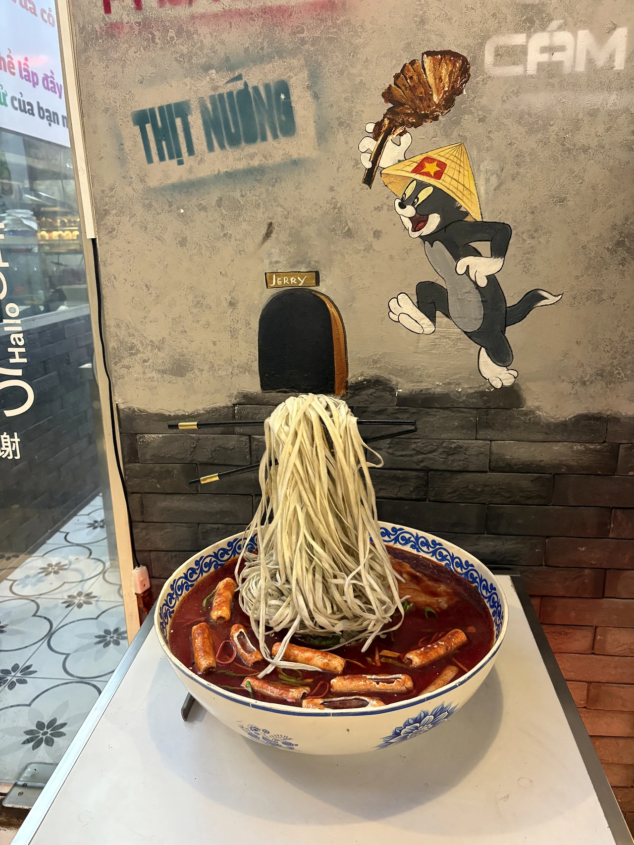몽키 : 골목에서는 국수가 공중에서 내려오는 아트로 이어져서, 시선이 오래 머물던 순간.