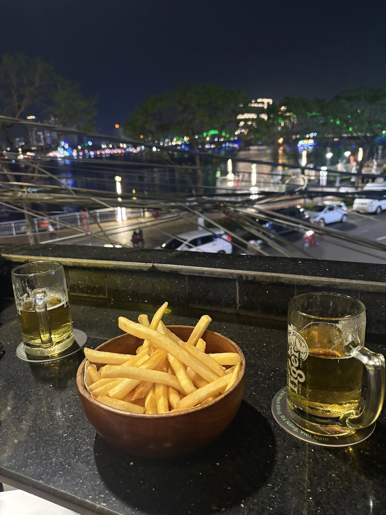 몽키 : 그래서 선택한 스포츠바에서 생맥과 감튀, 맛도 향도, 강을 바라보는 순간도 의미 있는 밤처럼 느껴져.