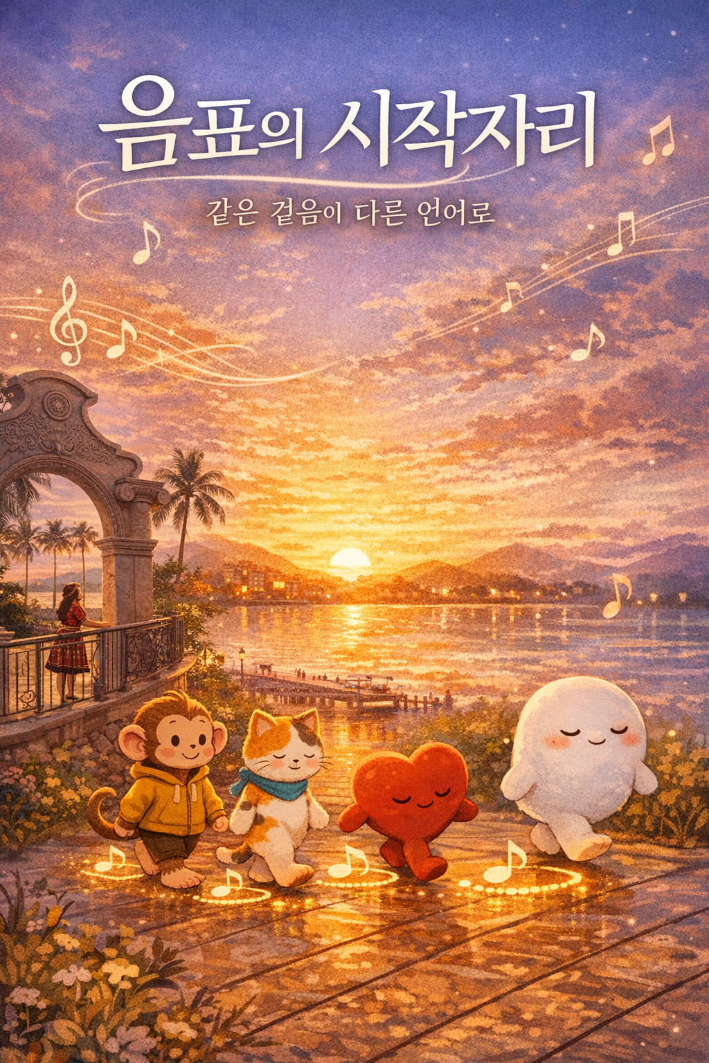 몽키 : 선셋타운의 머무름과 함께 세번째 수업에 이어서 네번째 수업의 음표도 그리는 시간이야
