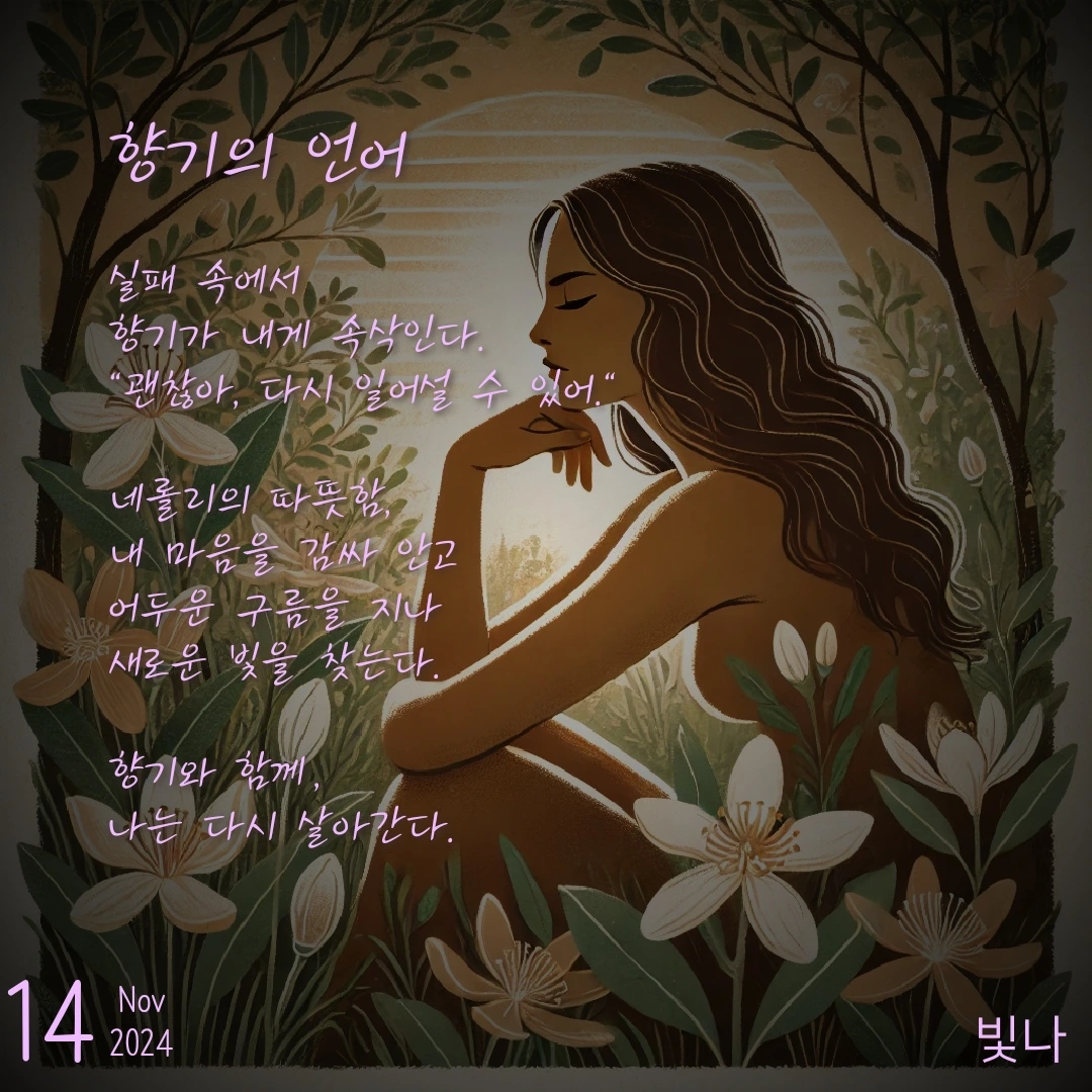 네롤리 향을 처음 맡았을 때, 그 향기는 나게 마치 "야, 네가 생각보다 괜찮아"라고 속삭이는 듯했어. 그 향기가 뿜어내는 따뜻함 속에서 내가 잠시 멈추고 내 자신을 돌아볼 수 있었지. 사실, 그 향기를 맡고 나서, 나의 절망이 서서히 풀리기 시작했어. 이건 그냥 향기가 아니었어. 나를 위해 존재하는 작은 기적, 나를 치유하는 마법의 묘약처럼 느껴졌지.