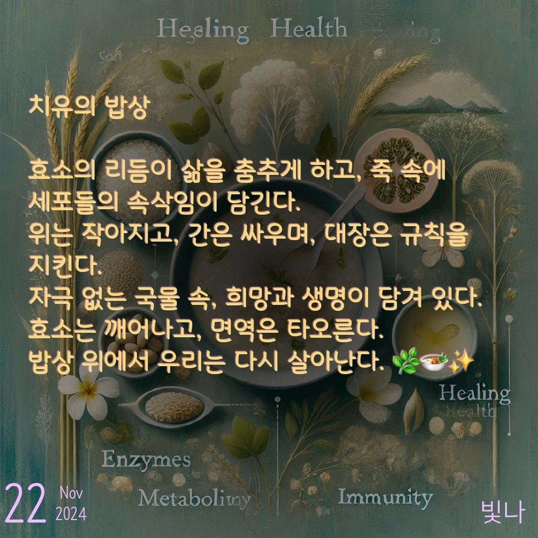 나르: "향도, 효소도 좋지만, 결국 핵심은 림프야. 림프 순환이 안 되면 좋은 향을 맡아도, 효소를 먹어도 효과가 절반밖에 안 나와. 림프는 몸의 기본 리듬이거든. 이 리듬을 놓치면 모든 게 삐걱댈 수밖에 없지."