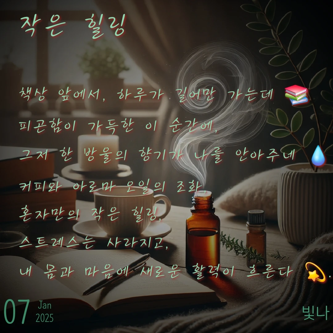 예린: "커피 향과 오일향의 조화라니, 왠지 오묘한 향기 테라피가 될지도 몰라!"
