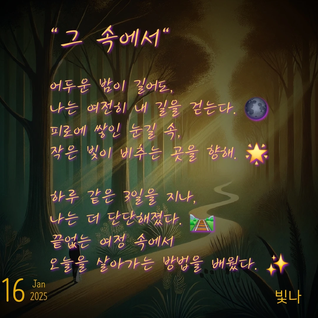 미림: 맞아. 힘들긴 했지만, 성장한 느낌이라 기분은 좋아. 하루 같은 3일이었지만, 나에겐 정말 소중한 시간이었어.