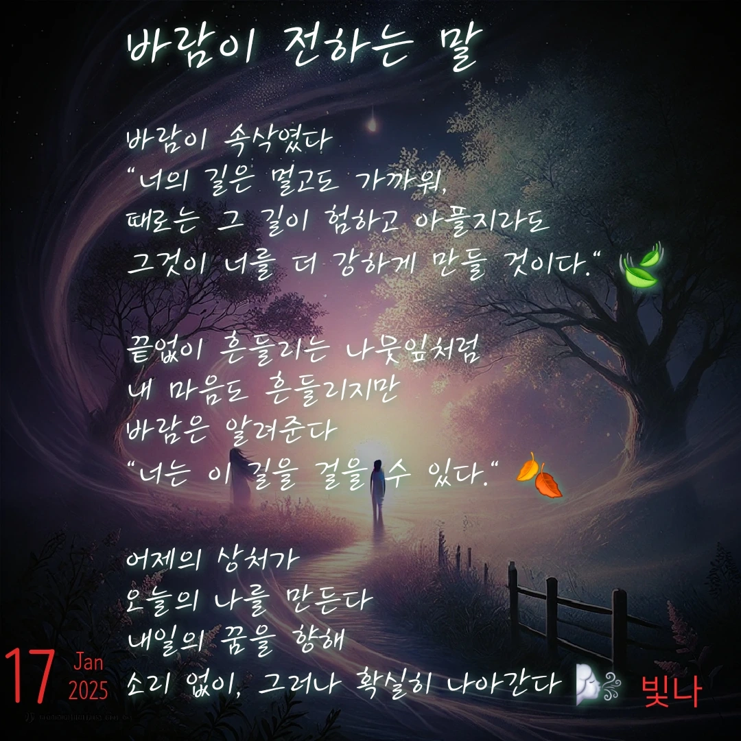우리는 과거의 고난 속에서 성장하고, 치유와 안정 속에서 새로운 시작을 준비하고 있다. 다가올 성취와 기쁨은 우리의 노력과 경험이 만들어낸 결실이다. 이제는 인생의 흐름을 믿으며, 모든 도전과 축복을 사랑하는 마음으로 앞으로 나아간다.