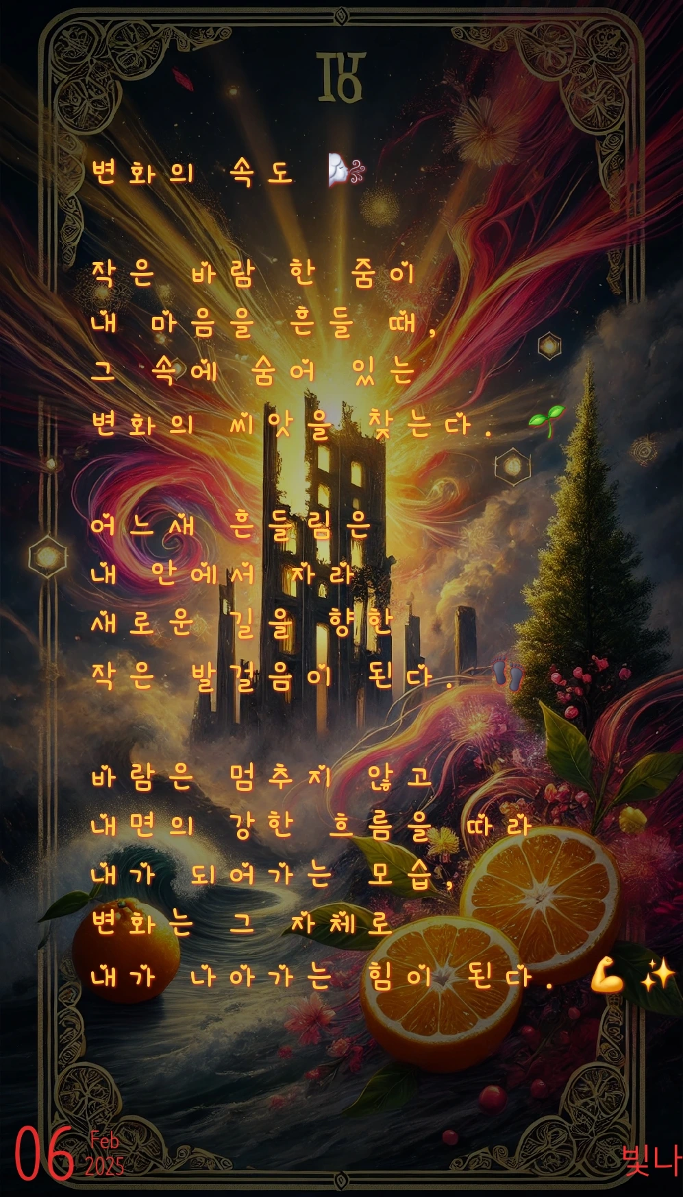 이제 나는 내면의 성장과 균형을 찾아가며, 더 나은 방향으로 나아갈 준비가 되어 있다.