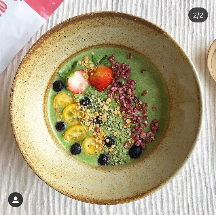 <그린스무디 볼>은 보통 시금치+케일을 베이스로 두유를 넣어 단백질을 챙기고 위에 과일과 그래놀라 토핑으로 올려 먹는다(너무 배부른 경우 그것마저 생략한다)