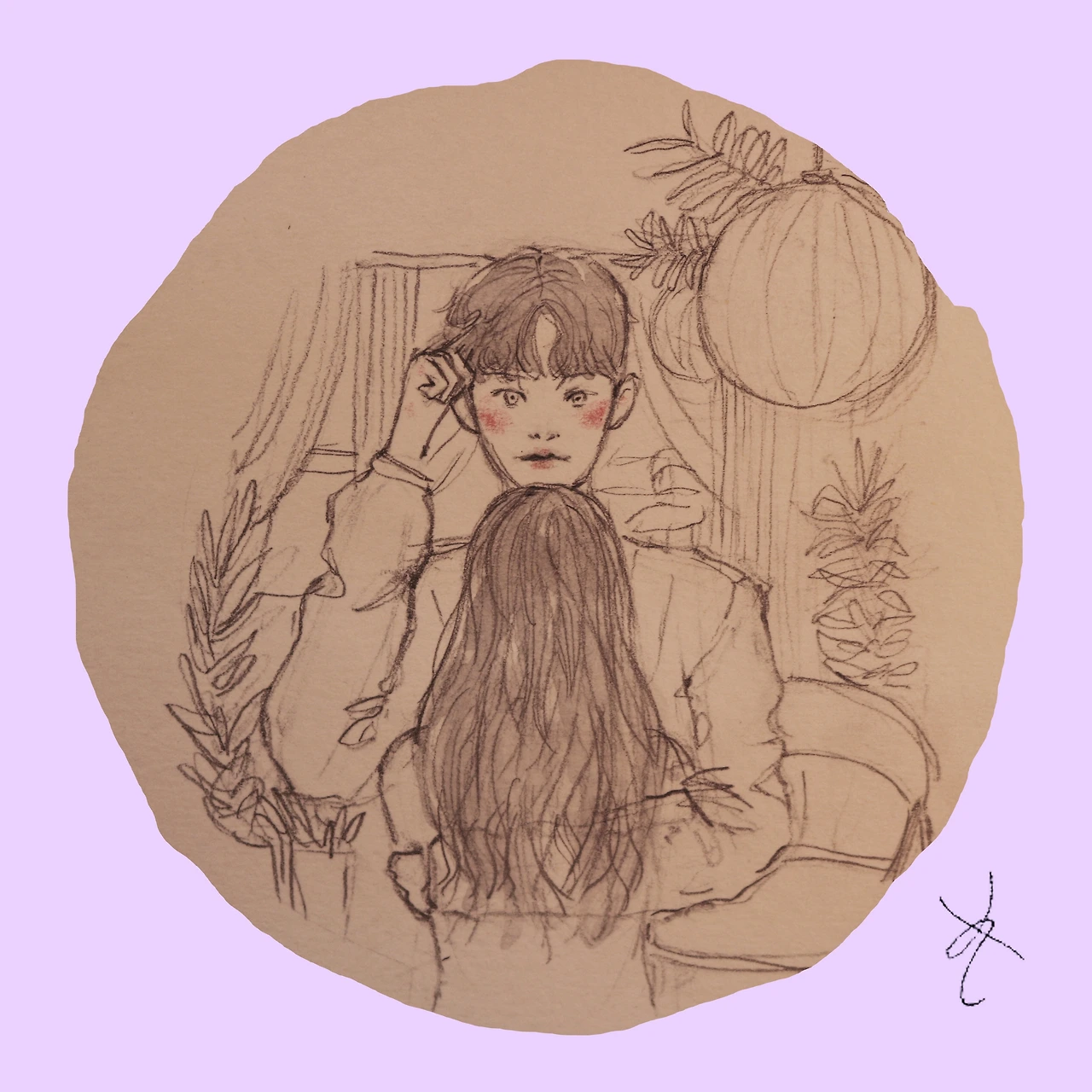 웃음이 났다. 모르는 일인 것 마냥 아무렇지 않게 거울을 보며 이제는 꽤나 길어진 앞머리를 만지고 있는 그를 올려다봤다.