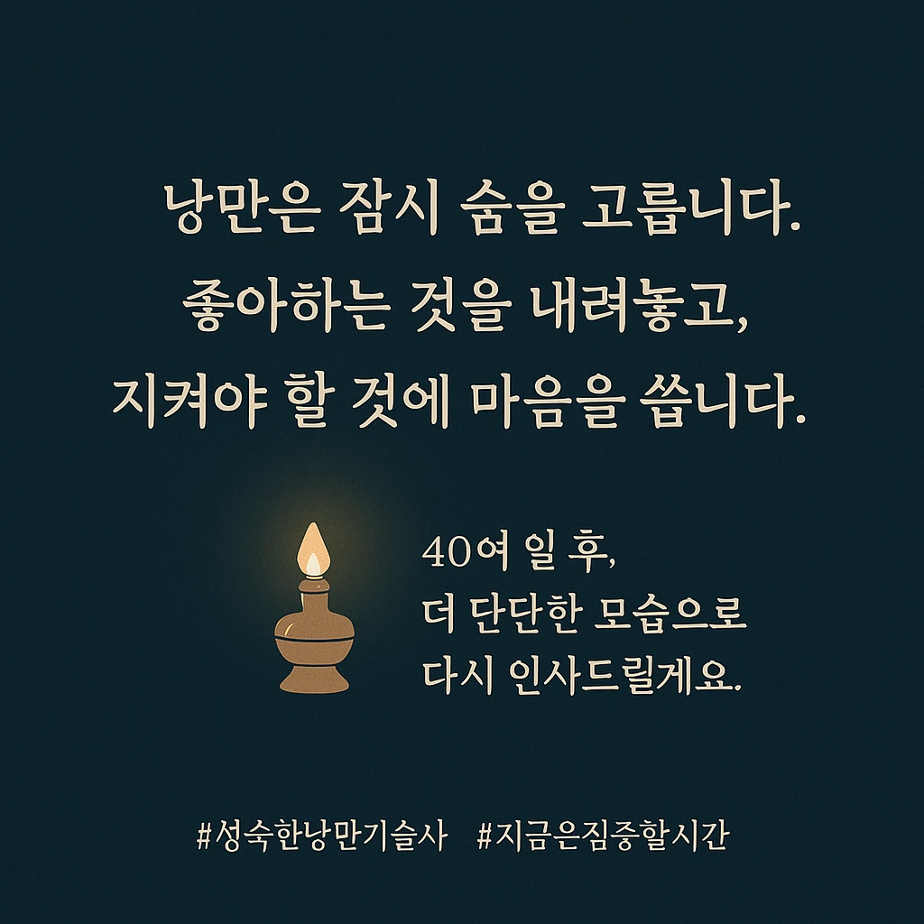 잠시 조용하더라도, 저는 지금 가장 소중한 것을 지키는 중입니다.