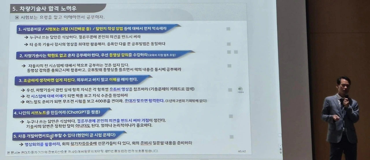내가 선택한 길은 ‘차량기술사’였다. 전국에 300여 명뿐이라는 이 자격은 단지 어려운 시험을 통과한 사람이 아니라, 자동차라는 복합체를 통찰하는 안목을 가진 자에게 주어진다. 내연기관의 회전부터 자율주행의 알고리즘까지, 기술의 폭은 시대의 속도만큼 넓어졌다.