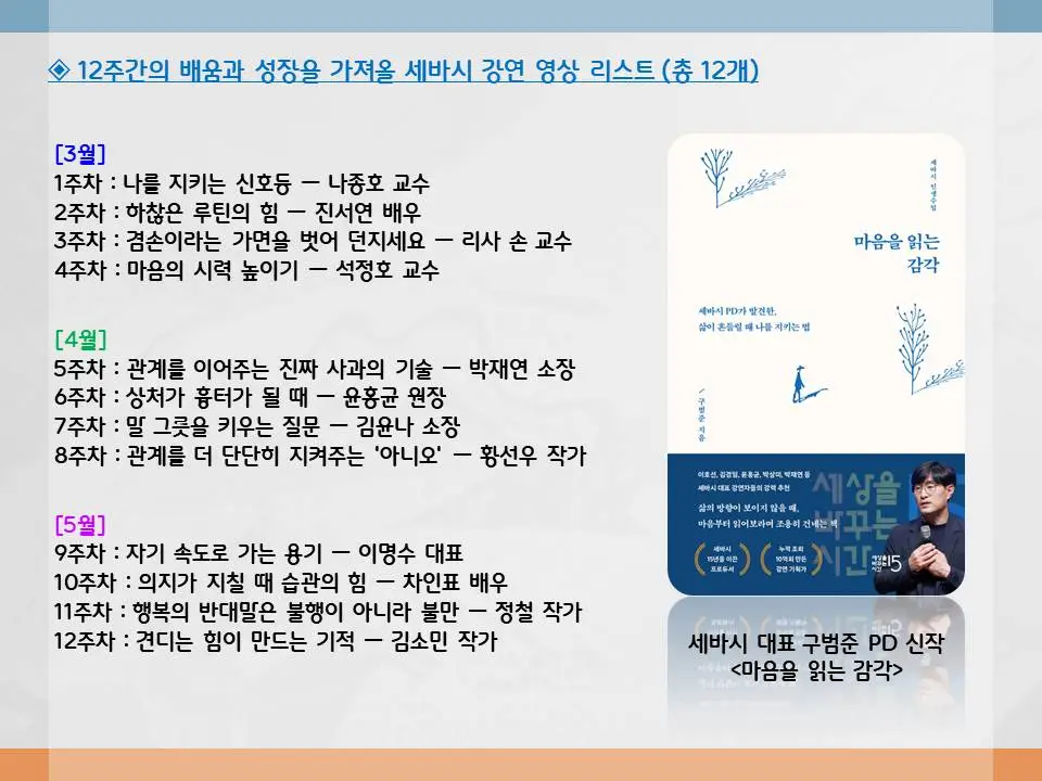 온·오프라인을 넘나들며 12주 동안 한 편의 강연을 함께 보고