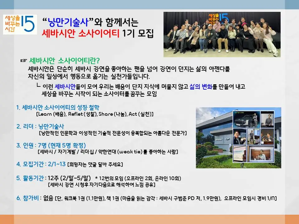어느 날, 세바시에서 하나의 공고문이 올라왔다.