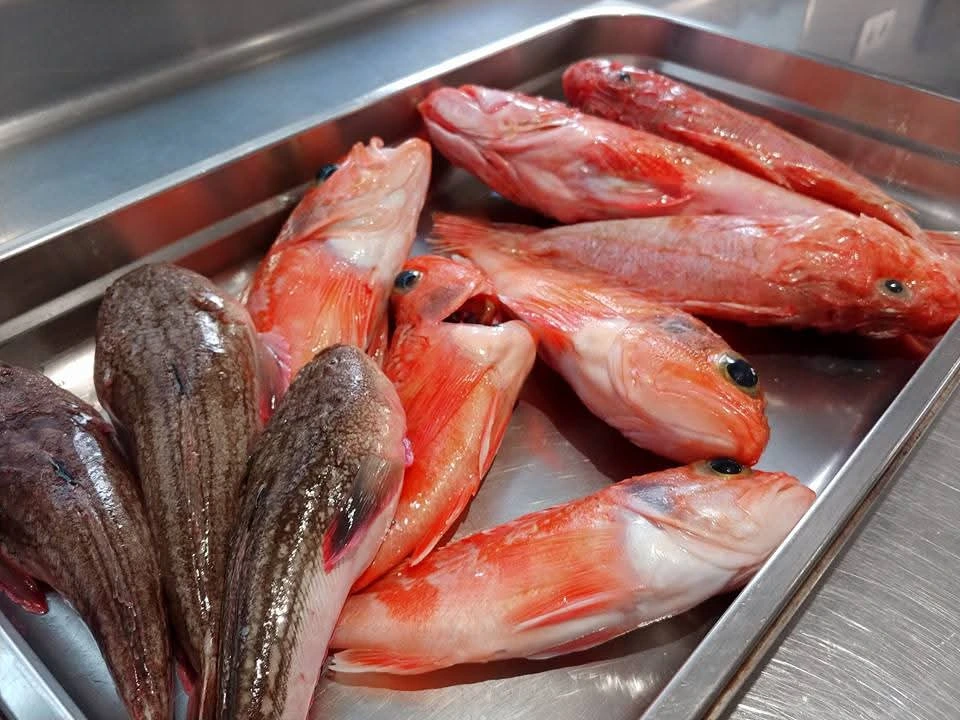 새우의 머리를 아르베키나라는 최고급 올리브 오일과 말돈 소금을 조금 얹어 숯불 위에서 구워 담는다.