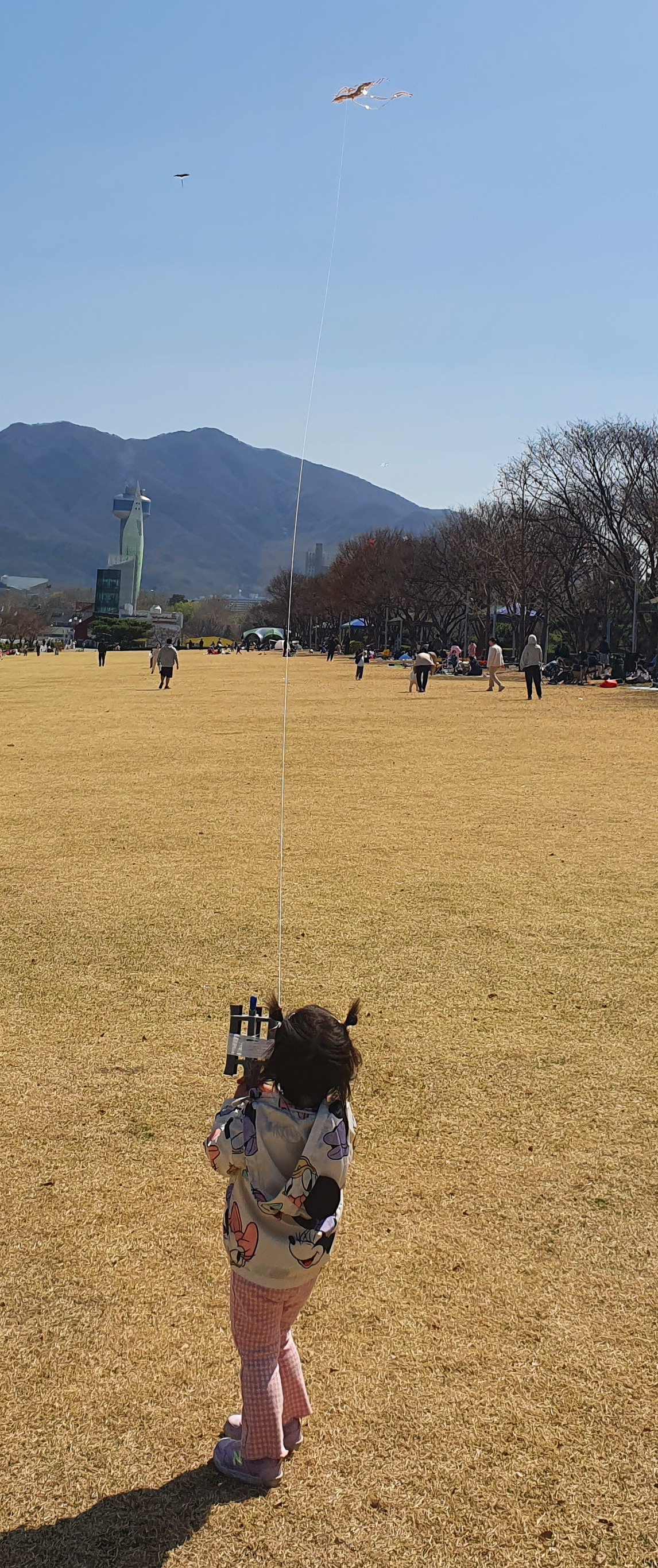 아이가 조종하던 연은 이내 바닥으로 떨어졌고, 또 해달라는 아이 덕분에 나는 한동안 거의 마라톤을 해야 했다. 나중에서야 가만히 서서 바람만으로도 연을 날릴 수 있다는 것을 알게 되었지만, 직접 들고뛸 때 보다 연이 잘 뜨지 않는 듯한 느낌이 들었다. 그래도 체력이 너무나 떨어져 있었기에 최대한 서서 어떻게든 연을 띄우려고 노력했다. 옆에서 나를 지켜보던 한 아저씨가 안쓰러웠는지 매점에서 5.500원 주고 산 연을 이리저리 손 봐주었다.