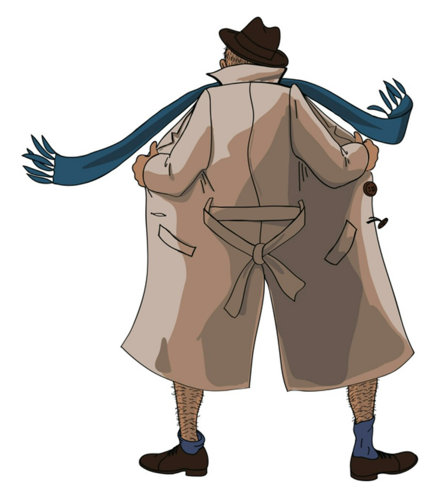 열고 닫는 분열의 공간이 왜 향락을 발생시키는 것일까? 열고 닫음이 반복되면서 열림의 씨실과 닫힘의 날실의 반복이 베일을 직조하기 때문이다. 바바리를 열고 닫는 반복이 만드는 그 베일이 그의 해부학적인 페니스(penis)를 남근적 가치를 갖게 하면서 그의 향락을 생산한다. 여기서 남근(phallus)이란 기호형식(significant)으로서의 남근이며, 어떤 의미작용, 즉 환상을 불러일으키며 향락을 만들어내는 어떤 것이다.