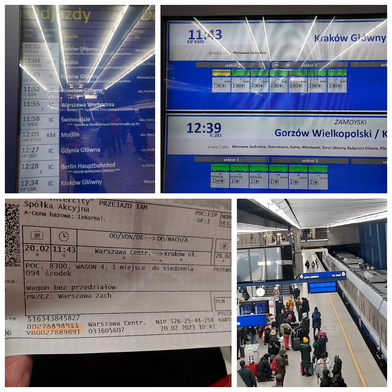 11시 43분 크라쿠프행 4번 플랫폼. 전광판에 안내된 대로 플랫폼에 내려갔다. 11시 20분 무렵 안내방송이 나오기 시작했는데 기다리던 사람들이 그 안내방송에 잠시 어수선해졌다가 흩어졌다. 누군가 나에게 열차에 대해 묻는데, 영어도 약한 상태에서 폴란드어 안내방송을 알아들을 도리가 없었다. 전광판에 30분 지연 안내가 떠 있었다.