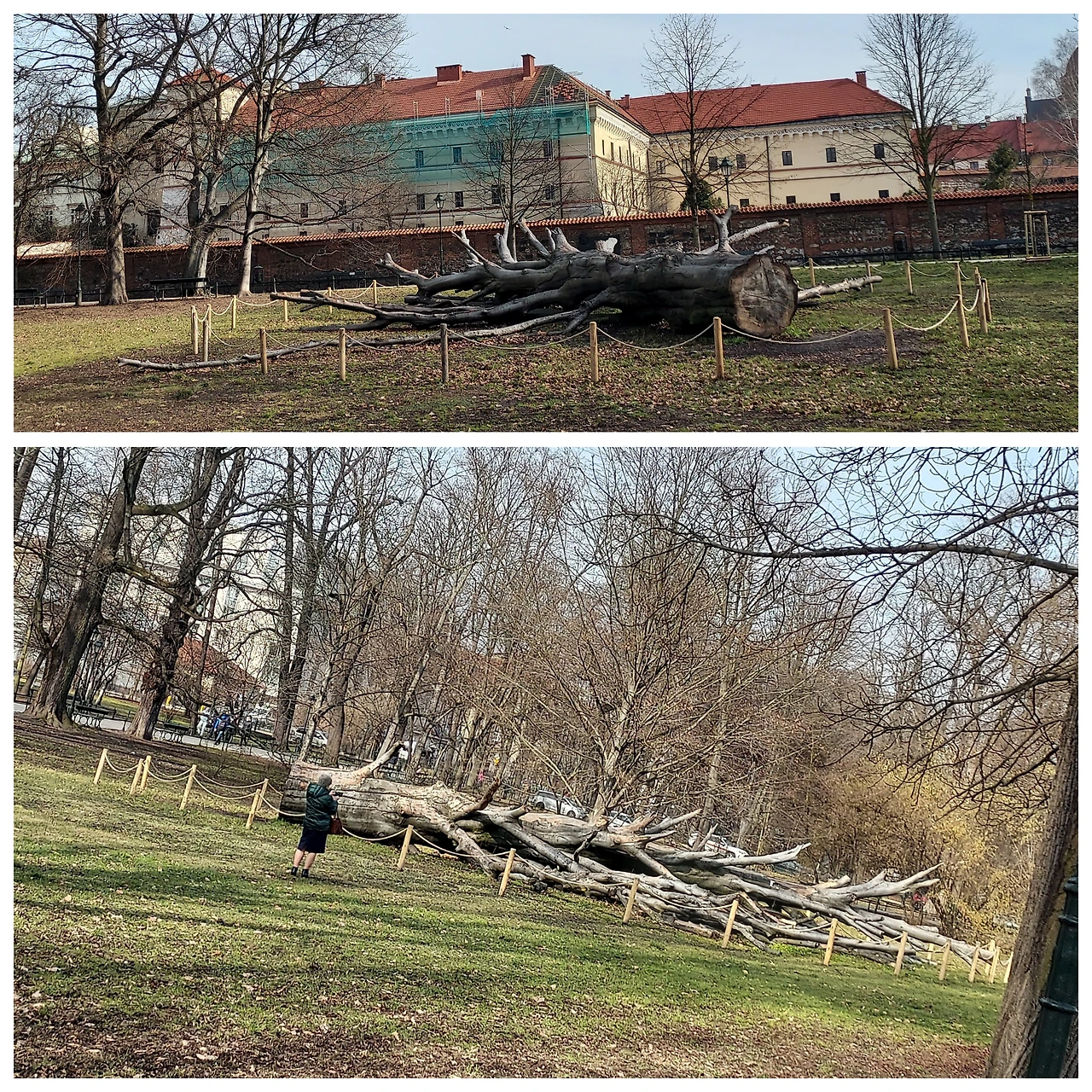중고등학교 때 배운 유럽 민속음악 노래 가사에 나오는 그 나무. 지금은 전기톱으로 자른 자국이 확연한 아름드리나무가 누워있는데 색깔이며 가지의 모양이 그냥 지나칠 수가 없게 눈에 띄었다. 나만 그렇게 보이는 건 아니었던 듯, 가까이 다가가 한참 동안 바라보며 사진을 찍고 나오는 사람도 있었다.