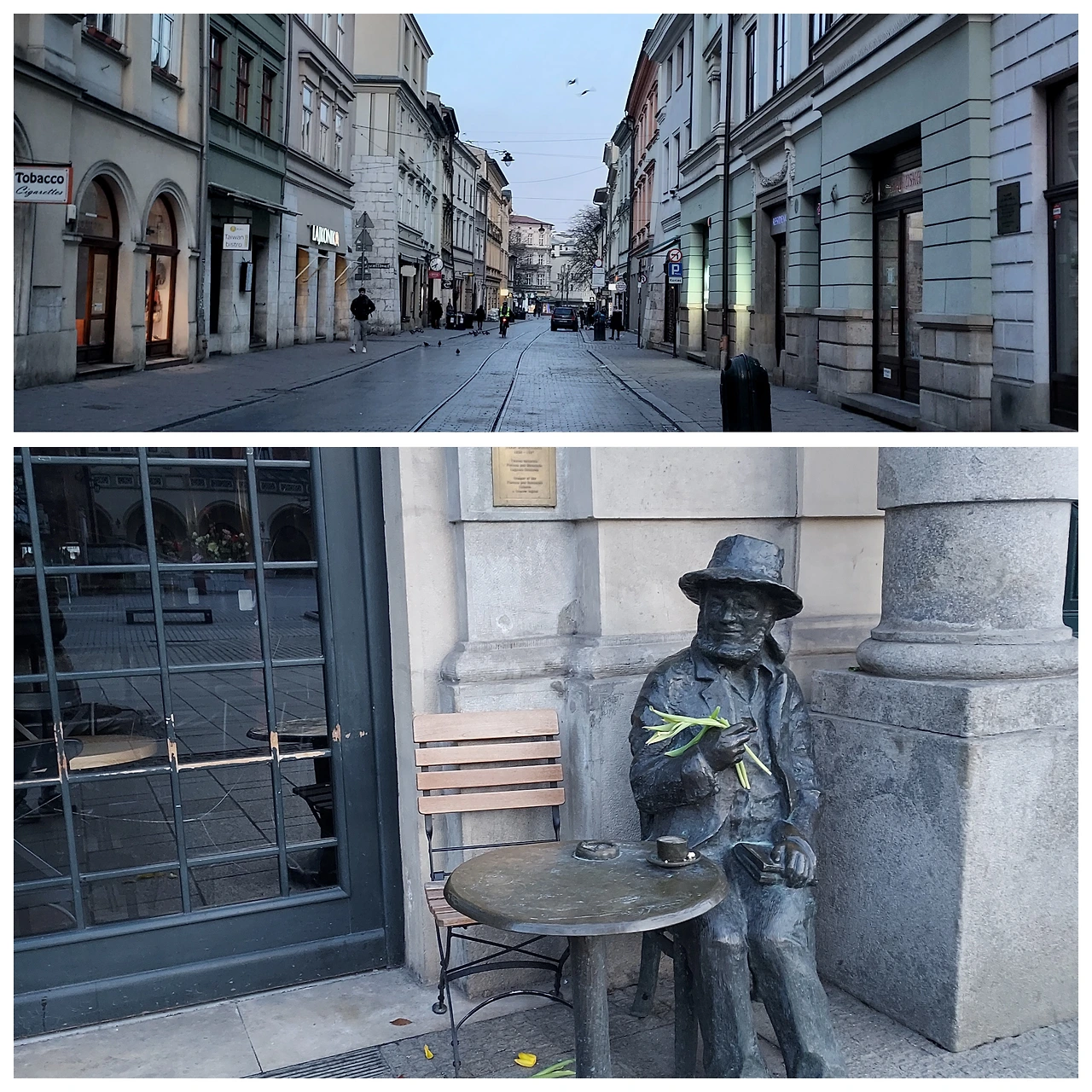 스타벅스 옆에 있는 가게 앞의 청동 할아버지 조각상 손에 꽃을 쥐어준 사람도 간밤에 술 파티하던 저 아이들 중 있겠지.