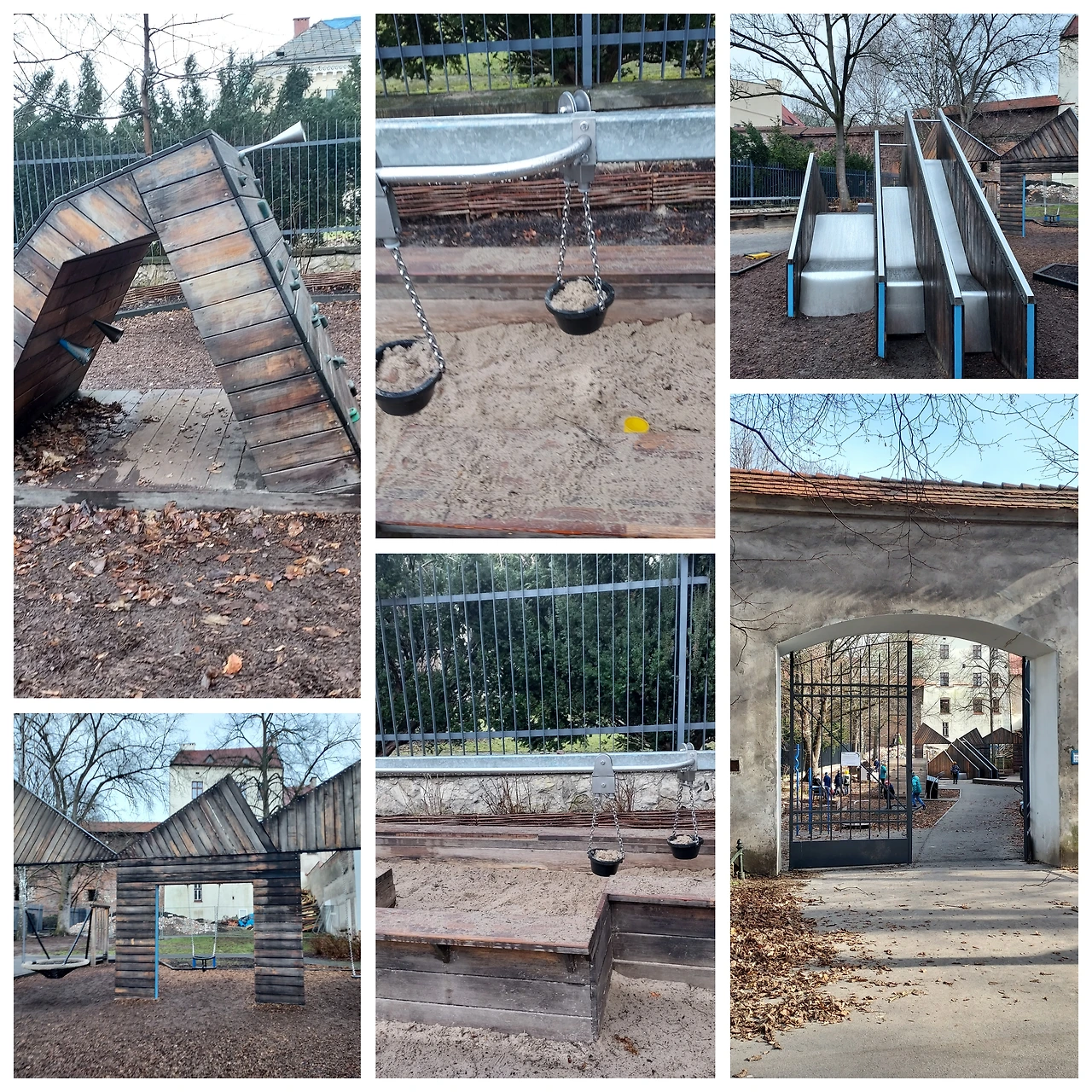 바벨성으로 걸어가는 길에 구글 맵에 '놀이터'라고 적힌 곳이 있다. 철제대문 안으로 아이들이 놀고 있었다. 다음날 아침에 빈 놀이터에 들어가보았다. 삼각형 몇 개가 겹쳐 보이는 건 목재로 감싼 미끄럼틀이다. 바크를 듬뿍 깔아놓아서 폭신폭신한 바닥. 도르레에 달린 바스켓이 움직이는 모래놀이장. 이 멋진 놀이터에서 아이들이 뛰어논다.
