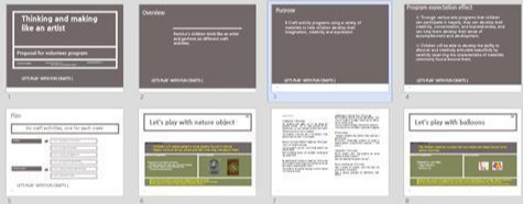 내가 키모리 지역 학생들을 위해 준비했던 프로그램은 '예술가처럼 생각하고 만들기'였다. 핑거페인팅, 랜드 아트, 요술 풍선, 옵티컬 아트, 종이접기, 사진 찍어 감정표현 카드 만들기의 6가지 활동을 설명하는 제안서를 가지고 다니면서 활동지를 찾아다녔는데, 첫 번째 방문한 고아원에서 완곡한 거절을 받은 다음날 두 번째 방문한 우모자 고아원에서 제안서를 받아주었다.