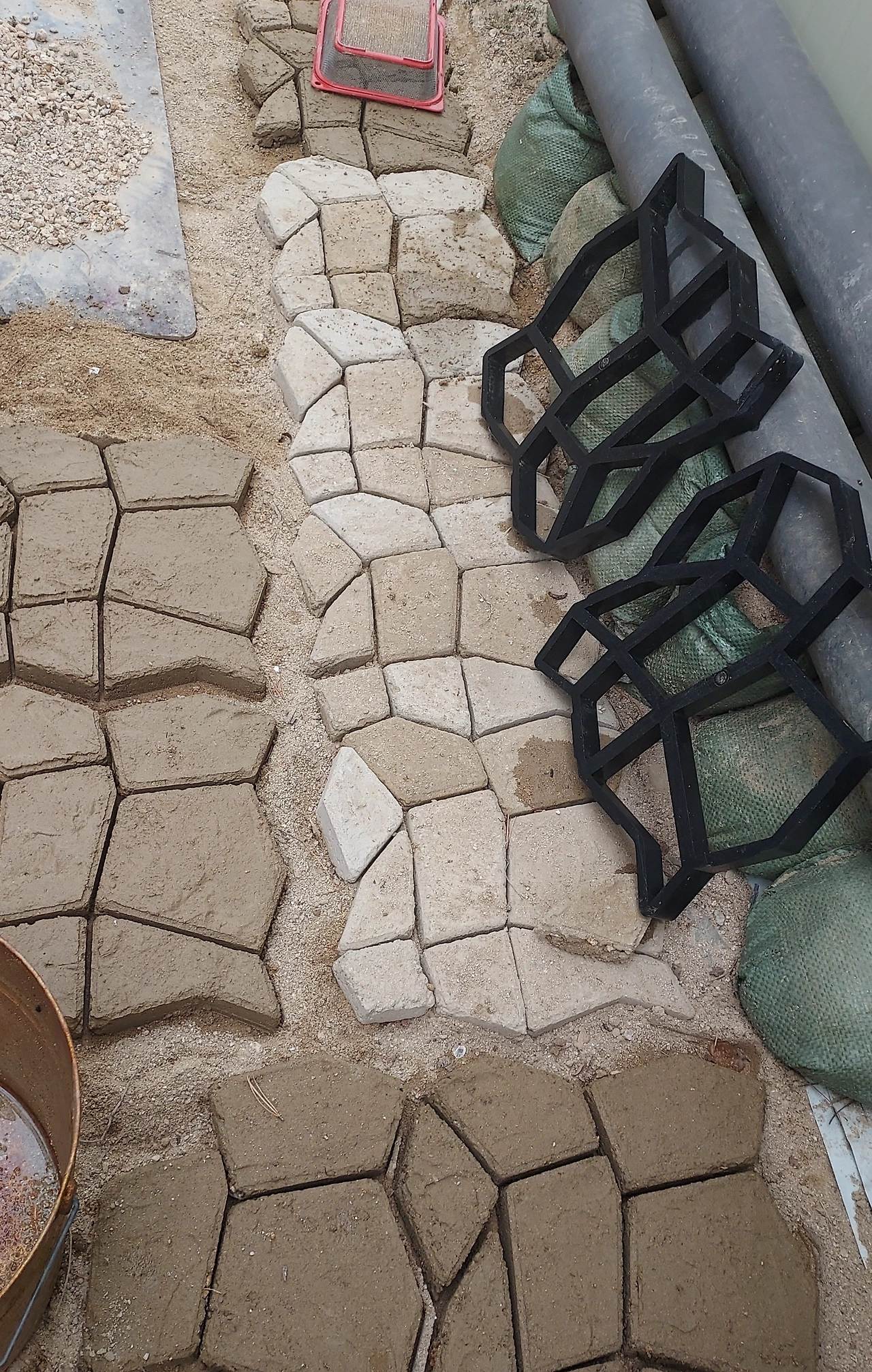 그것 또한 핀터레스트를 통해 얻은 아이디어였는데 알리익스프레스를 통해 싸게 구입한 콘크리트 몰딩에 로켓배송으로 받은 시멘트와 마당으로 흘러들어온 마사토를 섞은 반죽을 부어서 굳히면 그럭저럭 괜찮은 정원디딤석이 만들어진다.