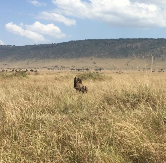 다음날 아침 한번 더 게임드라이브를 하면서 누떼의 이동철이라 강을 건너는 누떼를 볼 수 있었고, 왓독 한 마리가 사자의 아침식사로 쓰러지는 모양도 멀리서 볼 수 있었다.