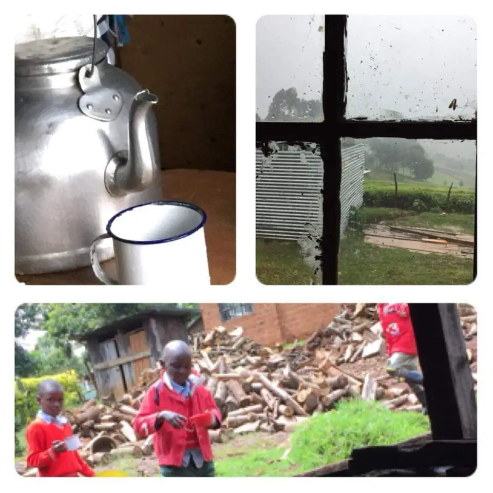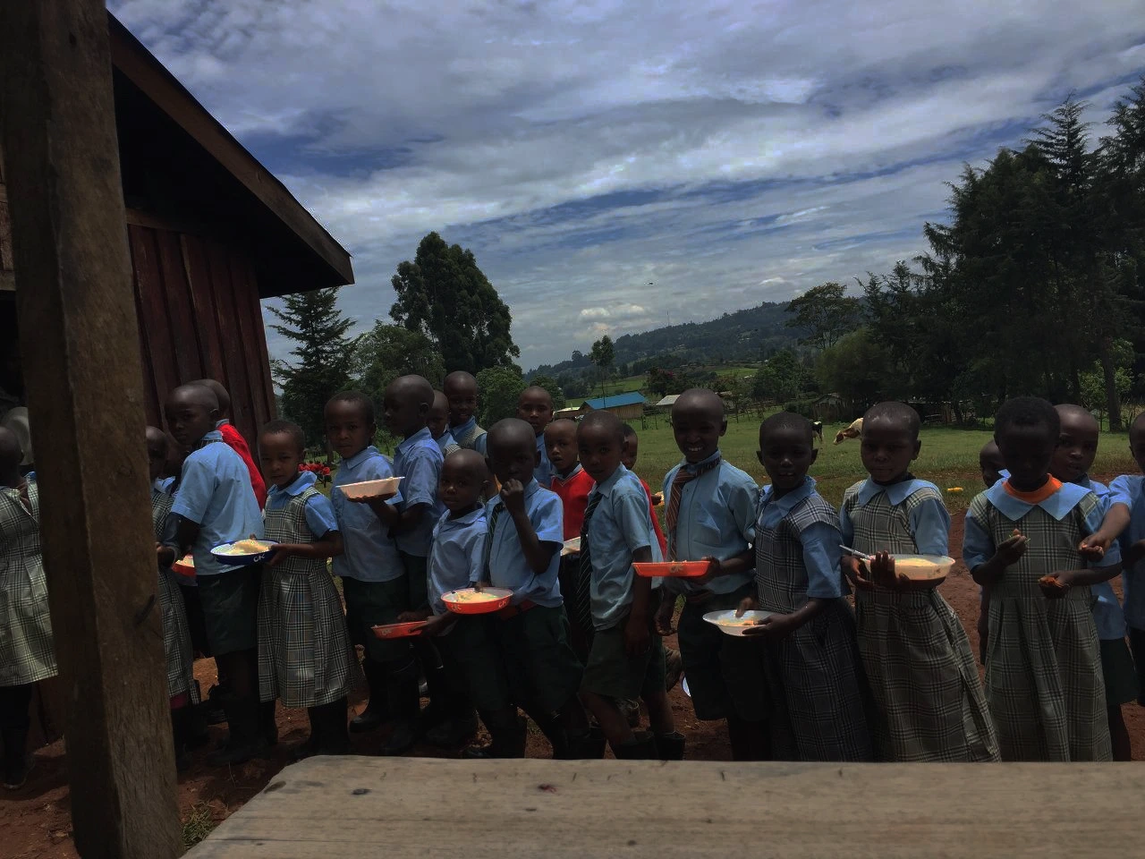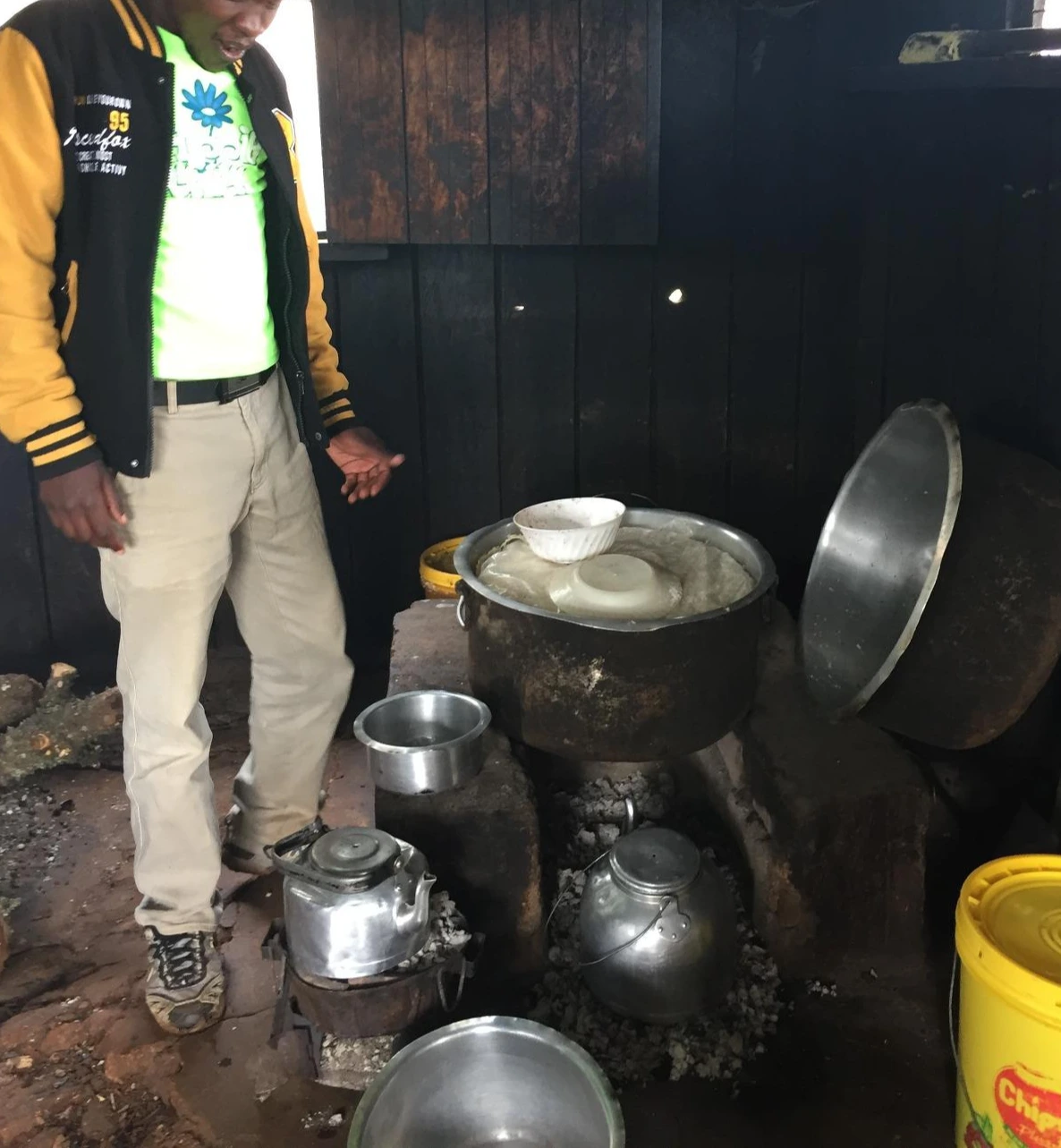 학교 급식을 위해 주방에서 장작불을 때서 만든 우갈리 한 덩어리, 콩과 야채가 들어간 수프 한 그릇을 받아 저마다 옹기종기 모여 식사를 하는 평화롭고 즐거운 점심시간.