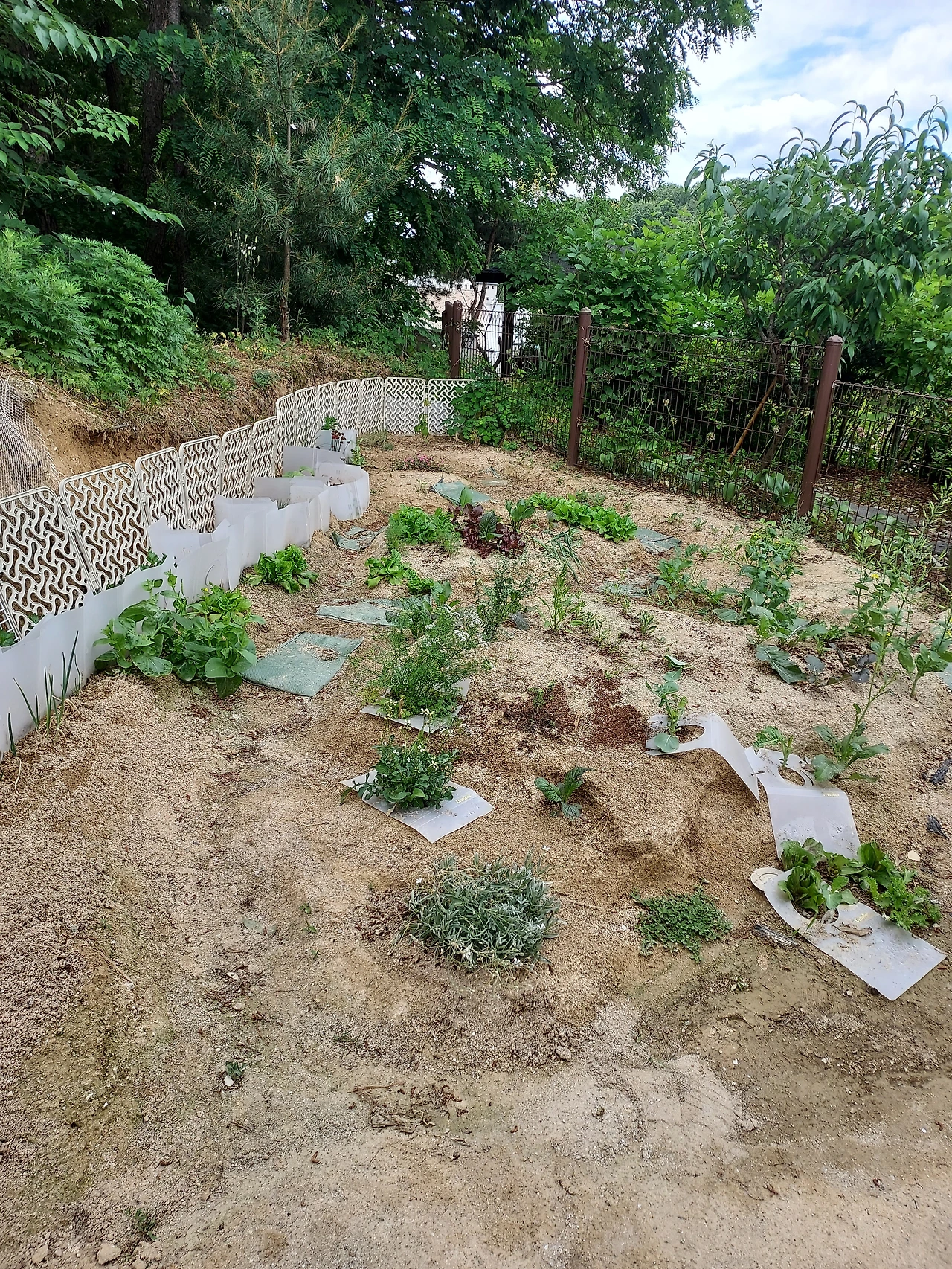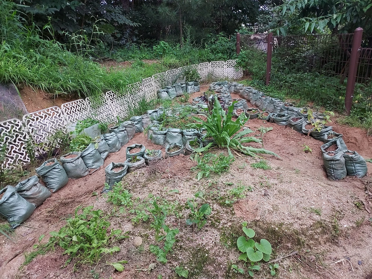 장마가 그치며 꽃대가 올라온 채소류를 다 뽑아내고 봄부터 생각했던퍼머컬쳐 가드닝에 도전을 하고 있다.