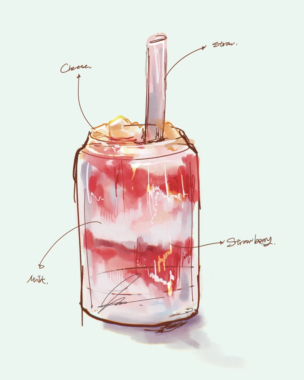진하게 스민 딸기 시럽,