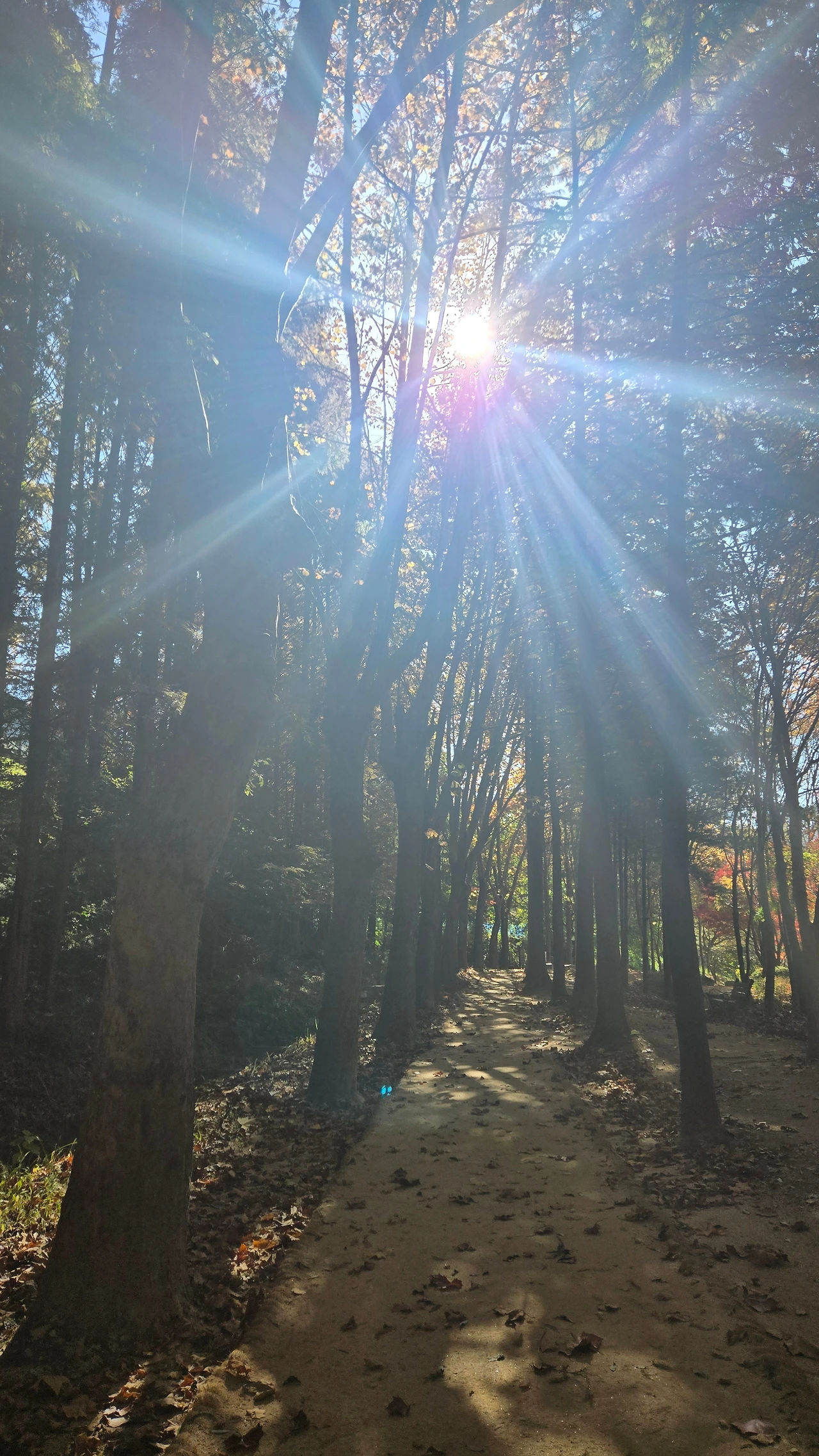 햇살에 비친 가을의 나무들은