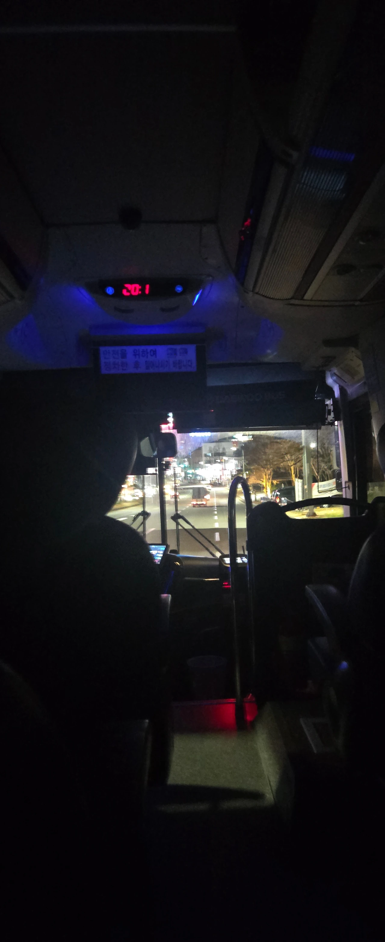 조용한 버스 안에 앉아