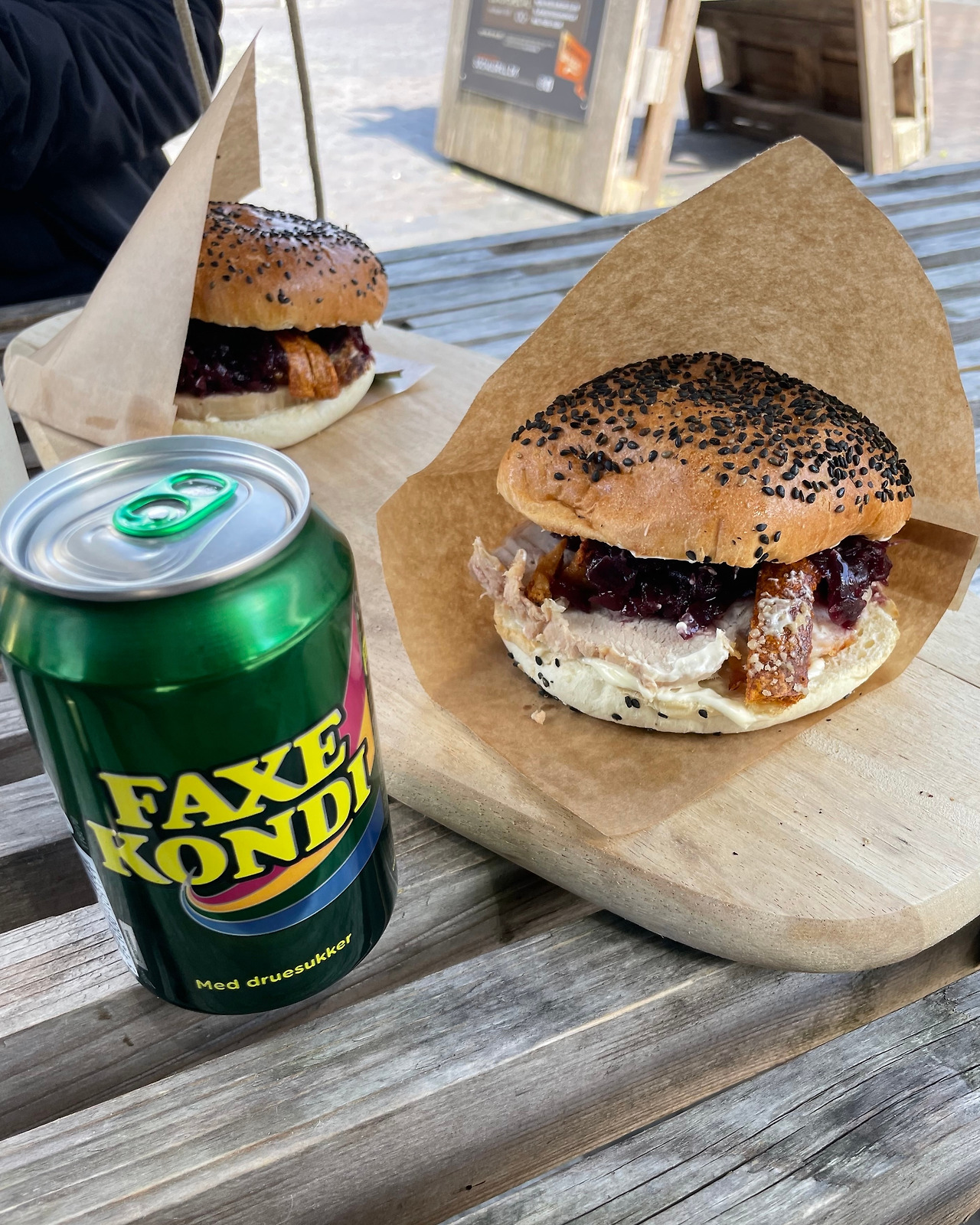 어느 날 집 근처에 점심을 먹으러 갔었던 Stegt Flæsk 버거다. Stegt Flæsk는 바삭하게 구운 돼지고기인데 덴마크의 국민 음식이라고 할 수 있고, 정말 고소하면서 근사한 맛을 가지고 있다. 그리고 옆에 보이는 덴마크의 칠성 사이다, Faxe Kondi. 덴마크도 미국이나 다른 유럽 국가와 마찬가지로 워낙 자부심이 강한 국민성을 가지고 있어서 뭐든지 덴마크 제품이면 극찬을 하며 추천한다. 친구들의 말로는 스프라이트나 한국의 칠성 사이다와 맛이 다르다고 하는데 뭔가 그런 거 같기도 하고 아닌 거 같기도 하지만 사실 나는 사이다 소믈리에가 아니라서 알 길이 없다.