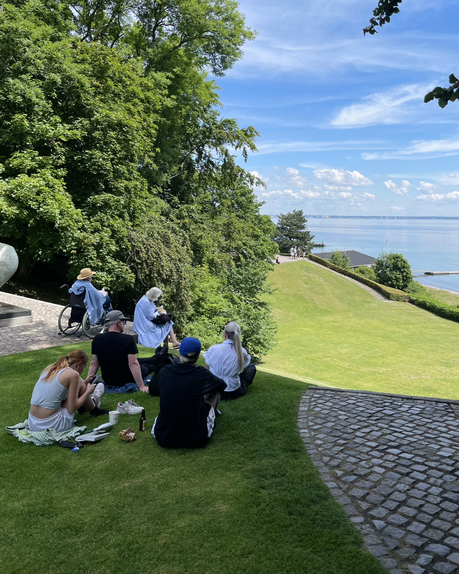 Louisiana 현대 미술관의 야외 공간. 반대쪽에 보이는 땅은 스웨덴이다. 사람들은 어김없이 자리를 잡고 여름을 느끼며 여유로운 시간을 보낸다.