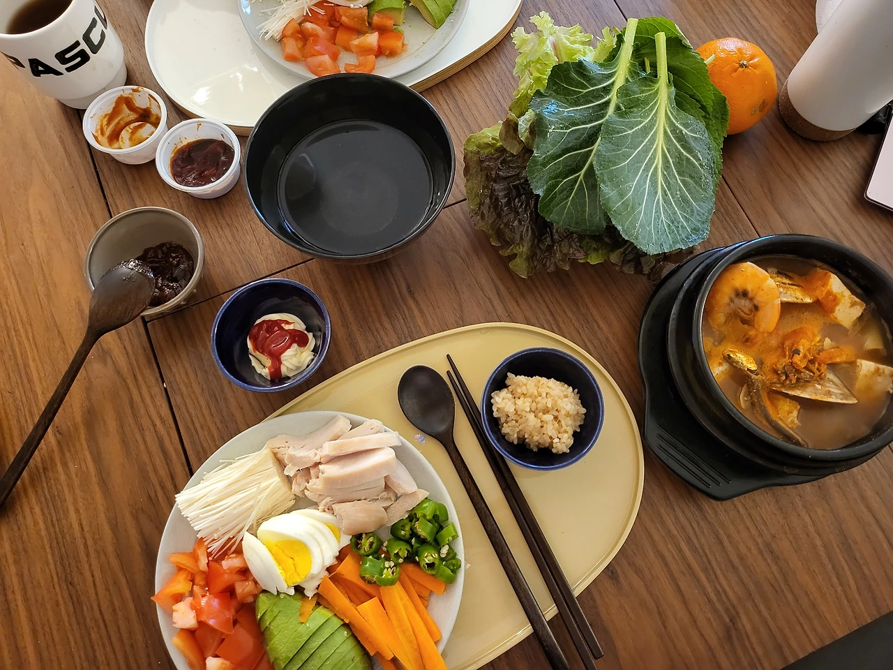 언니는 올리브유 나는 들기름을 뿌려 먹는 걸 좋아한다. 먹고 싶은 소스를 그때그때 바꿔서 먹을 수 있게 편리하게 해 줘서 더욱 좋은 아침이다. 우리는 늘 먹던 건데 언젠가부터 조승우원장님의 cca주스가 유명해져서 많이들 마시는 거 같다. 우리는 워낙 씹어 먹는 걸 좋아해서..... 아무튼 주스로도 마셔 봐야겠다.