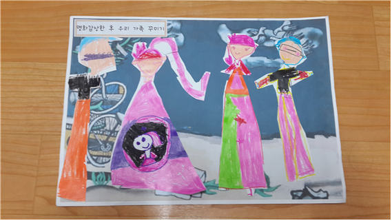 “그림을 그린 후 가위로 잘라서 붙였는데