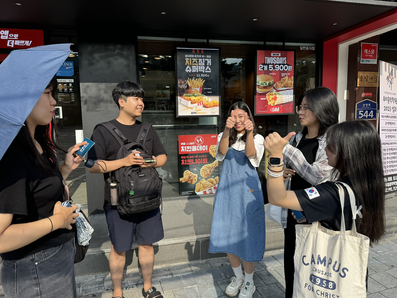 이번 전도에 나오게 된 데는 이유가 있습니다. 저번에 한성대에서 전도할 때, 하나님이 전도하라고 말씀하셨지만 그때는 나가지 않았습니다. 그런데 간사님이 연락을 주셔서 나오게 되었습니다.