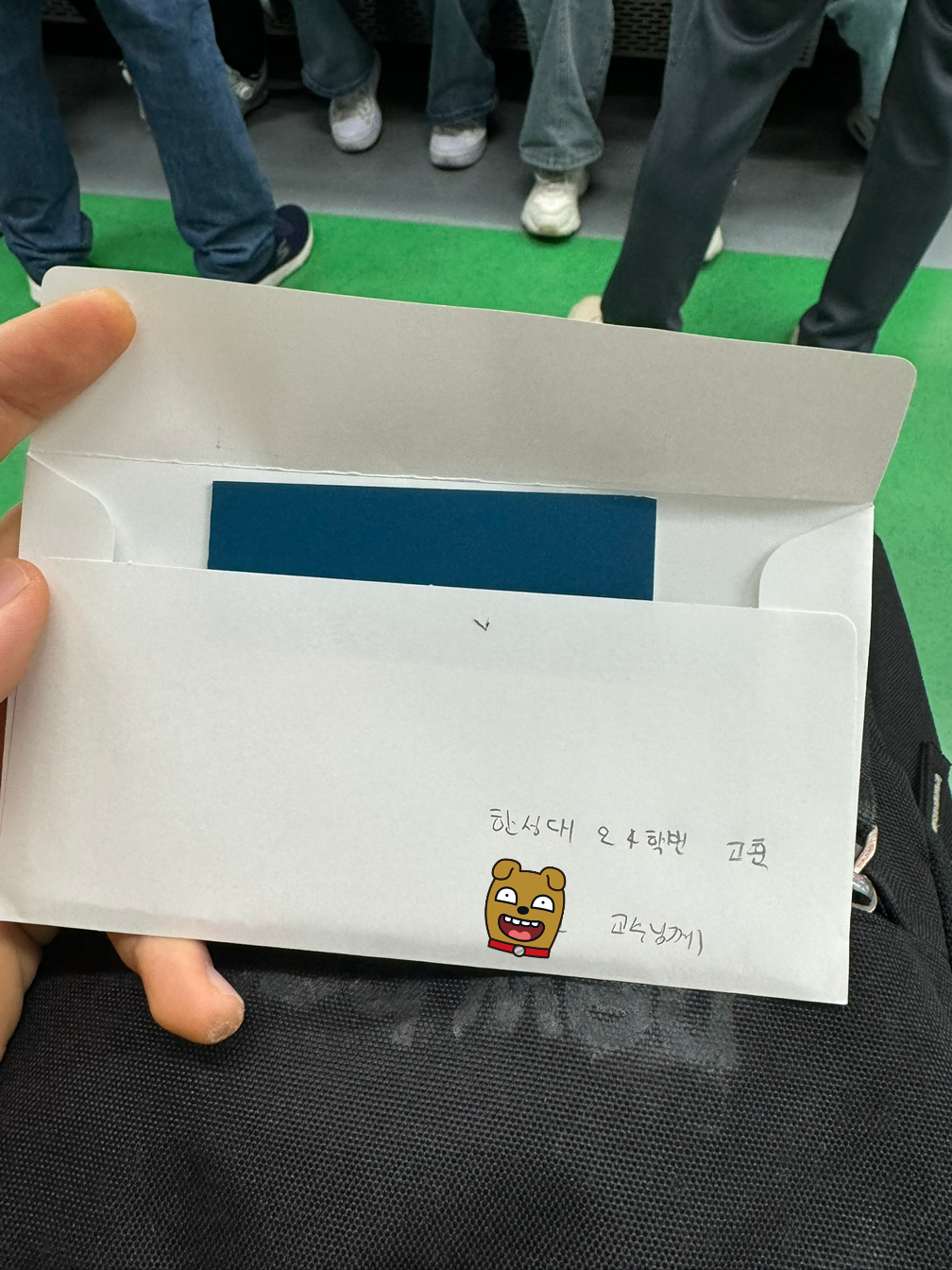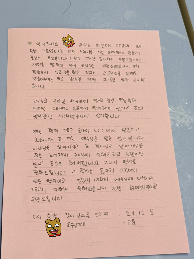 IT 관련 강의 교수님께 위에 편지를 전해드렸다.