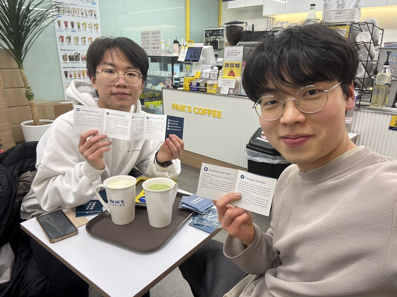 - 인이형: 한성대에서 하는 전도와 비슷해서 놀라웠다. 훈이가 말했듯이, 안 받아줄 것 같은 사람들도 받아줘서 그런 생각이 편견이었다는 걸 깨달았다. 감사하게도 선입견을 갖지 않고, 모두에게 다가가는 게 좋다는 걸 느꼈다. 처음에는 그냥 지나치는 분이라고 생각했지만, 훈이가 대화하는 모습을 보고 ‘가능하구나’라는 걸 깨달았다. 처음에는 기대 반, 걱정 반이었다.