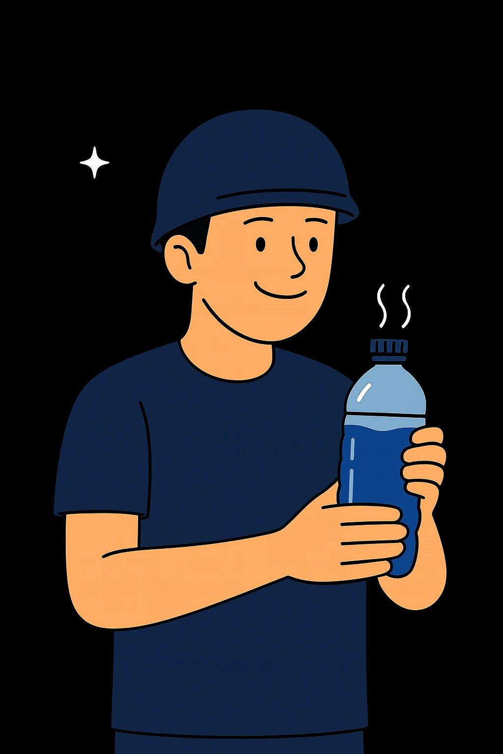 할 수 없이 따듯한 플라스틱 병을 옷 안에 넣었다.